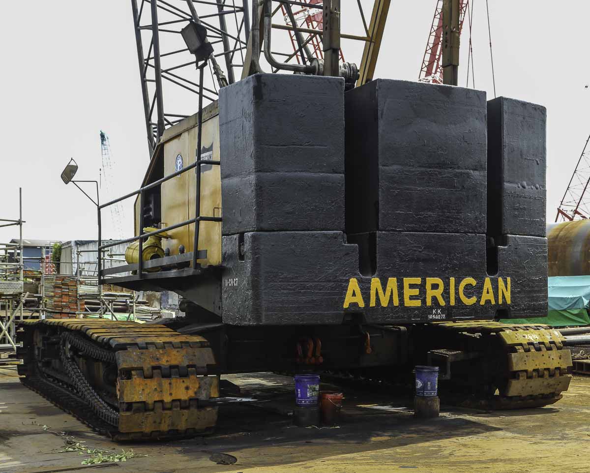 Dieser schöne und starke American 9310A wurde auf einer Montagewerft in Singapur (SG) eingesetzt, es handelt sich um einen 450.000 lbs (204,12 Tonnen) starken Raupenkran. In der Zwischenzeit ist dieser Kran nicht mehr im Einsatz.
