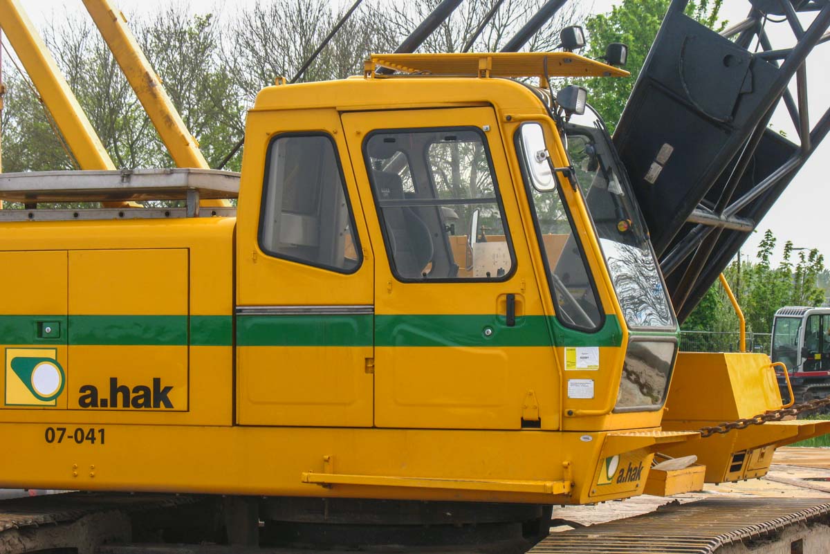Hier war der Kran mit einem 25 Meter langen Hauptausleger aufgebaut. In dieser Konfiguration kann der Kran maximal 26,3 Tonnen bei 6,1 Metern Ausladung oder 4,45 Tonnen bis 22,8 Meter Ausladung heben. Ein sehr schöner Kran von A.Hak!