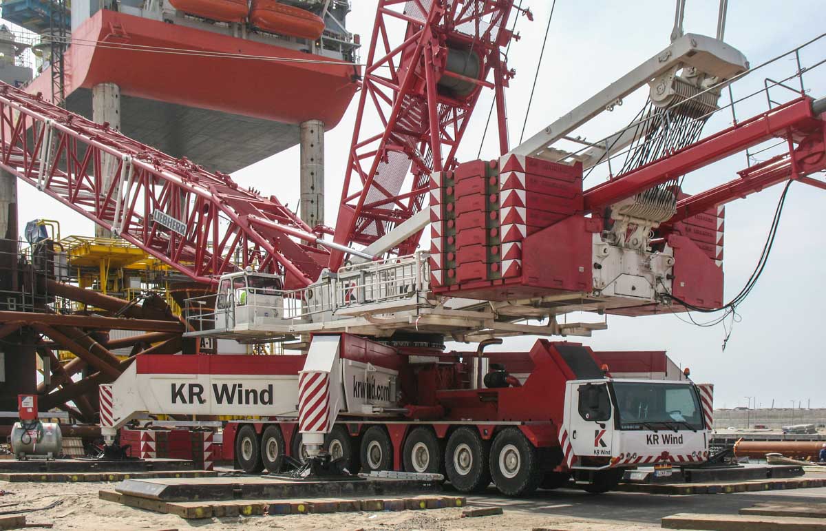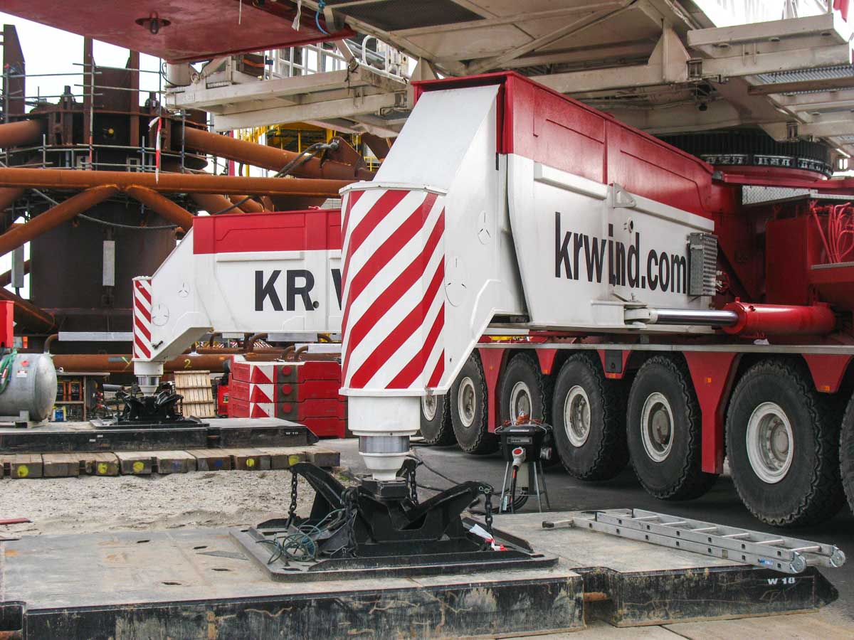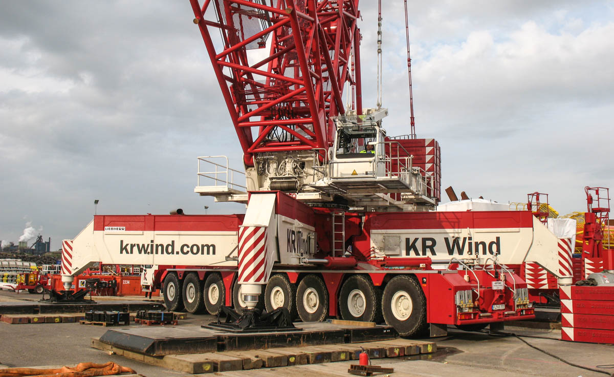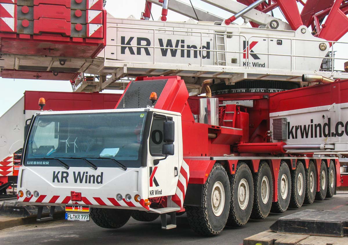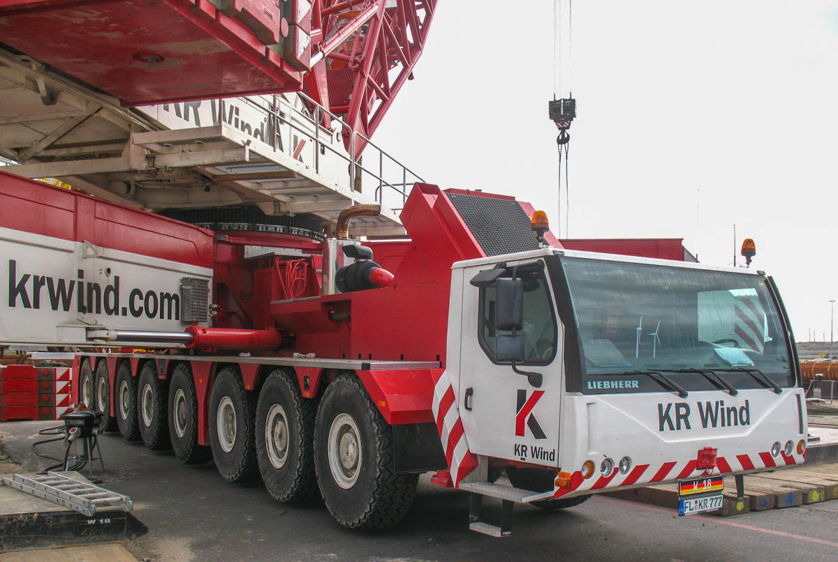 Obwohl KR Wind ein dänisches Unternehmen war, trug dieser Kran ein deutsches Kennzeichen. Dies wird häufig gemacht, da es einen einfacheren Zugang zu anderen europäischen Ländern ermöglicht.