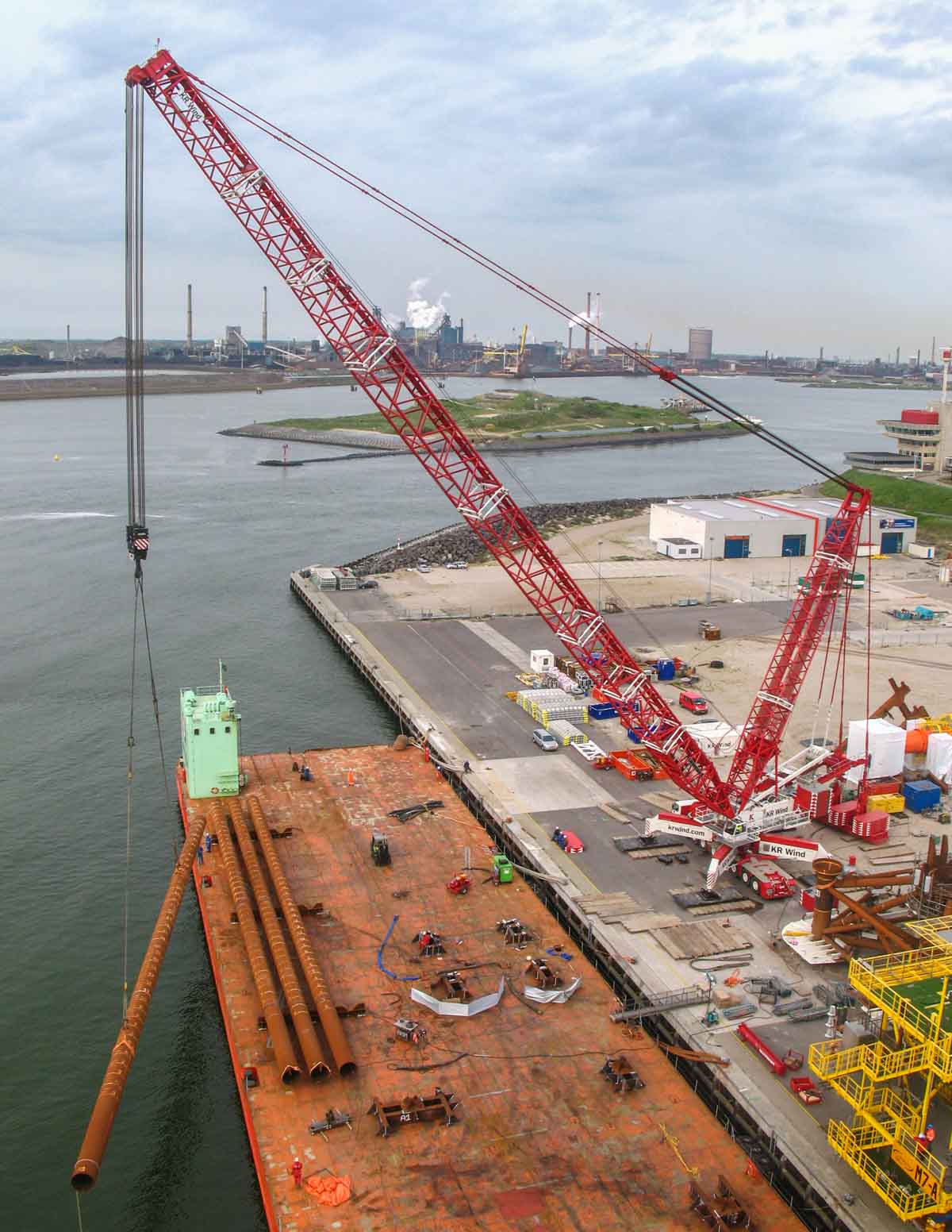 Einige Tage später durfte der Kran erneut seine Kraft zeigen. Dieses Mal musste ein Monopile gehoben werden.