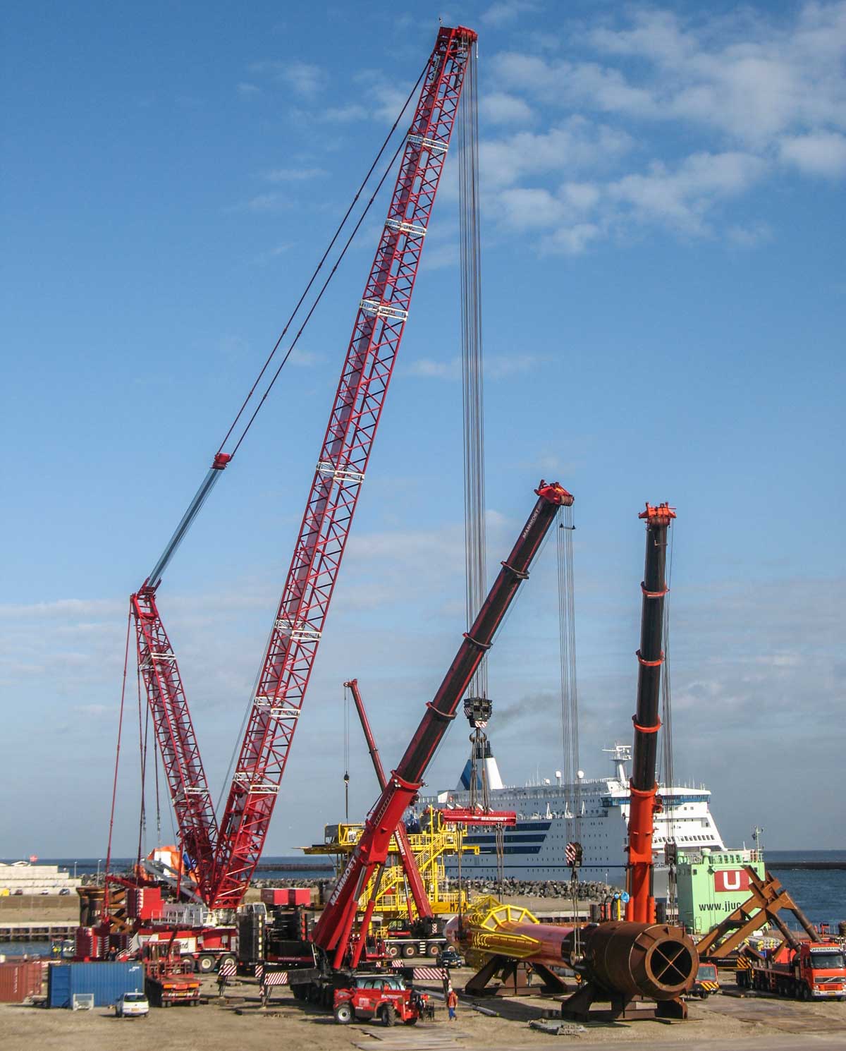 Beide Demag AC 650 haben den Hauptausleger auf eine Länge von 35,5 Metern ausgefahren und sind mit 140 Tonnen Ballast ausgestattet. Die LG 1750 ist weiterhin mit einem 77 Meter langen Hauptausleger aufgebaut, hat jedoch den Superliftballast auf 266 Tonnen erhöht. Der maximale Superliftballast beträgt 400 Tonnen.