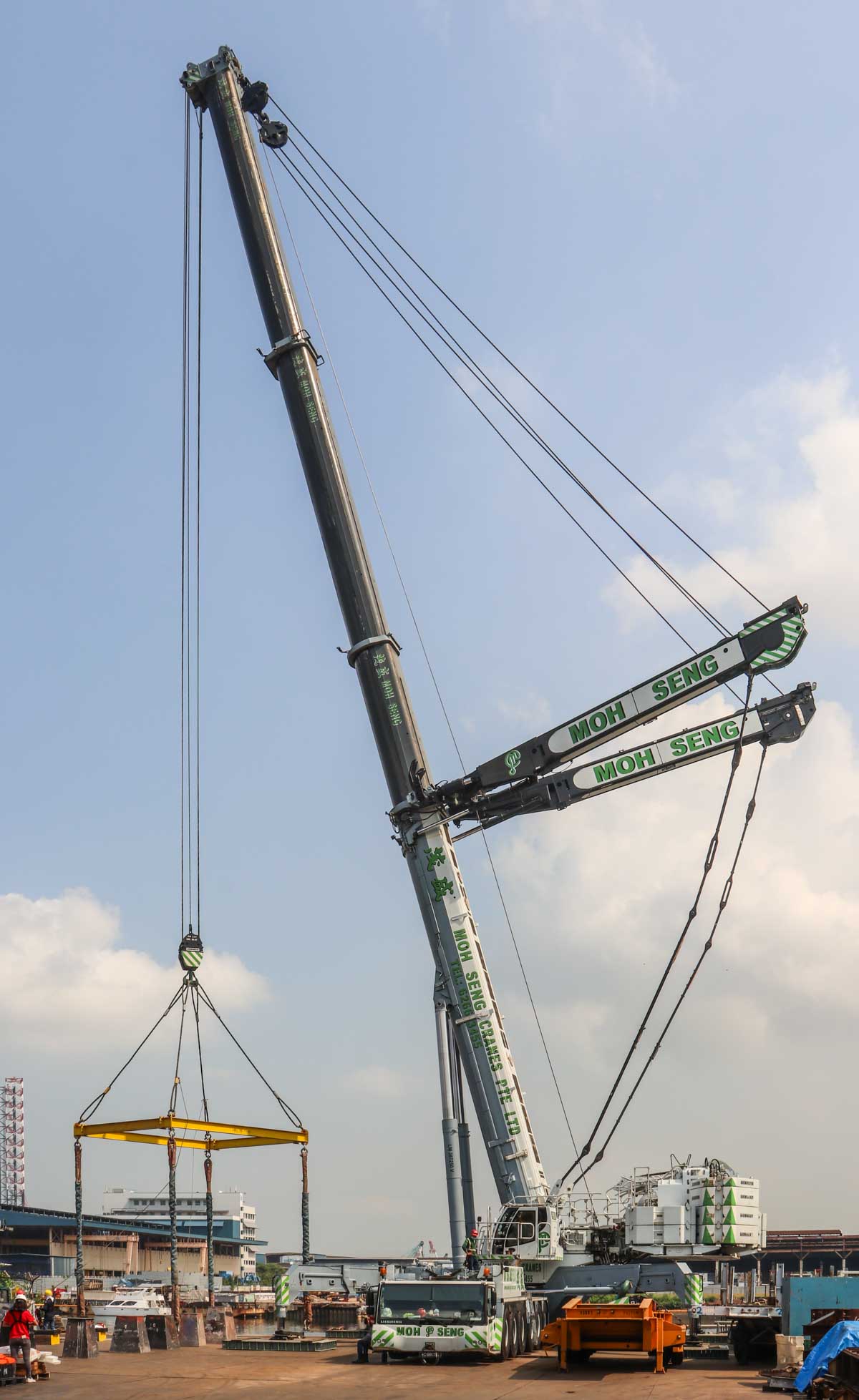 Es handelt sich um einen 750-Tonnen-Mobilkran, der auf einem 9-Achs-Fahrgestell aus dem Baujahr 2014 montiert ist. Der Kran ist nicht mehr bei Moh Seng im Einsatz und arbeitet inzwischen in der Türkei. Moh Seng hat nun einen 900-Tonnen-XCMG XCA900L8 als größten Kran der Flotte in Betrieb genommen.