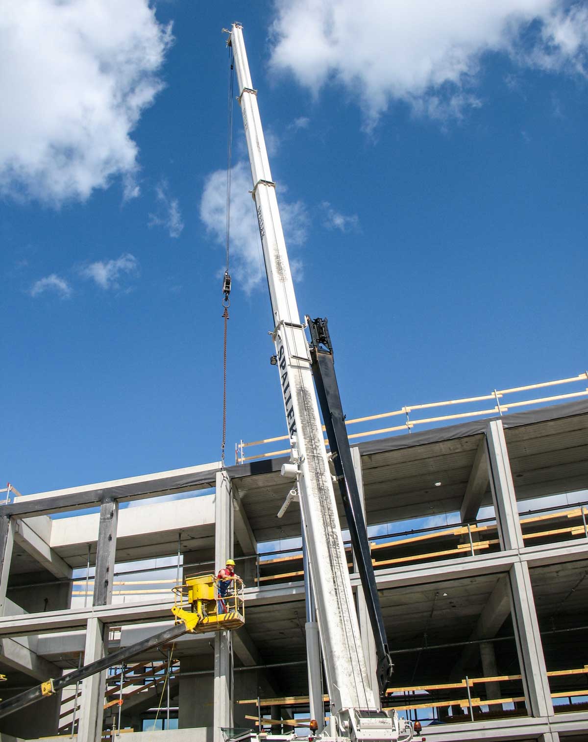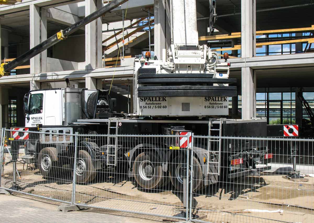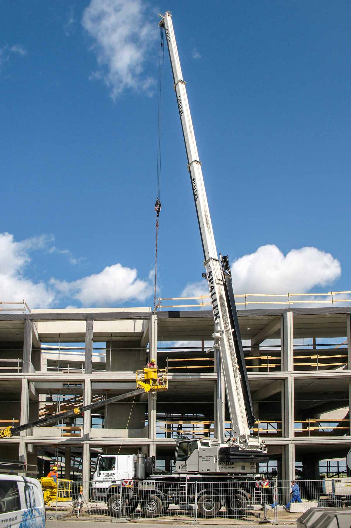 Ein sehr schöner Kran von Spallek. Dieses Unternehmen setzt Teleskopkrane mit Hubkapazitäten von bis zu 300 Tonnen ein.