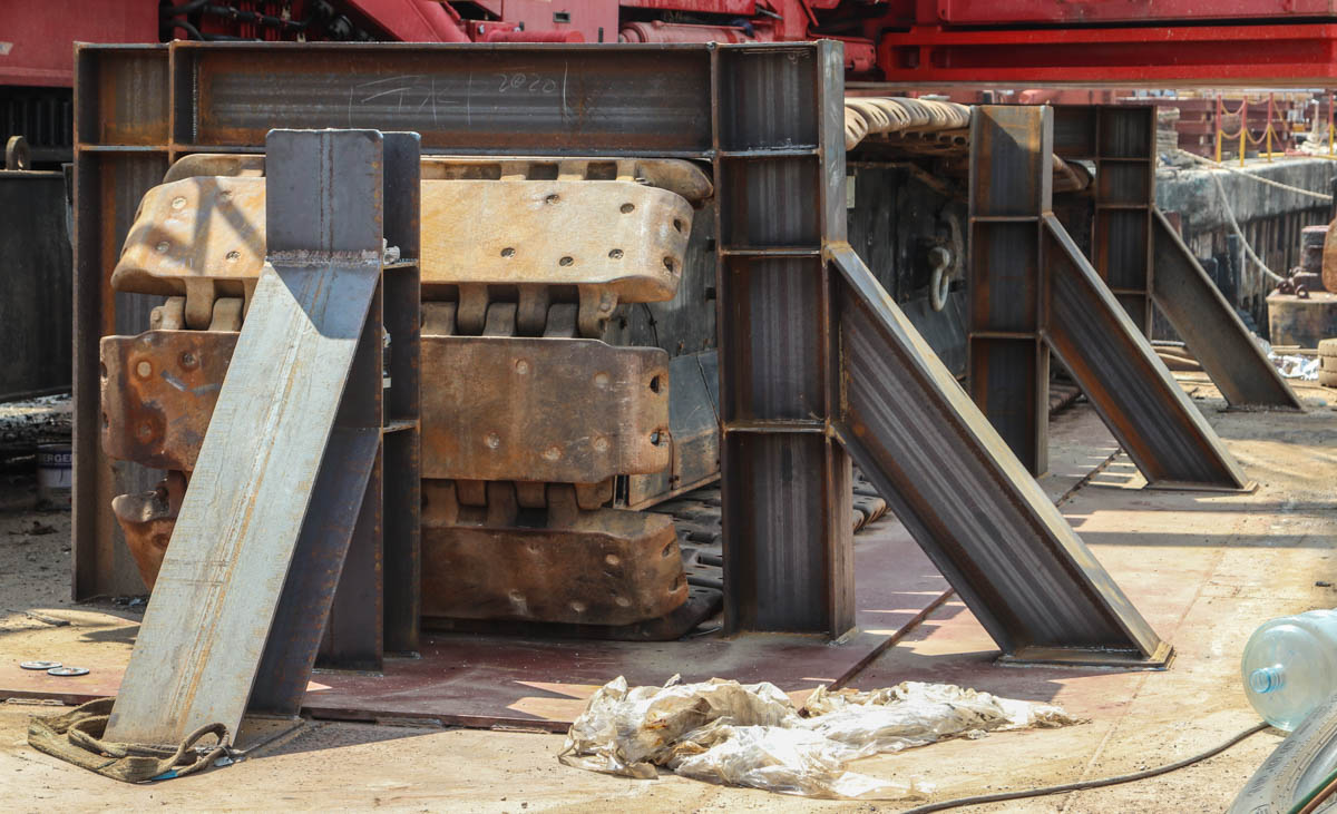 Jede Raupe ist 10,43 Meter lang, 1,52 Meter breit und 1,61 Meter hoch. Eine einzelne Raupe wiegt etwa 32,66 Tonnen. Da der Kran über See transportiert werden sollte, wurde das Untergestell mit großen Stahlrahmen gesichert.
