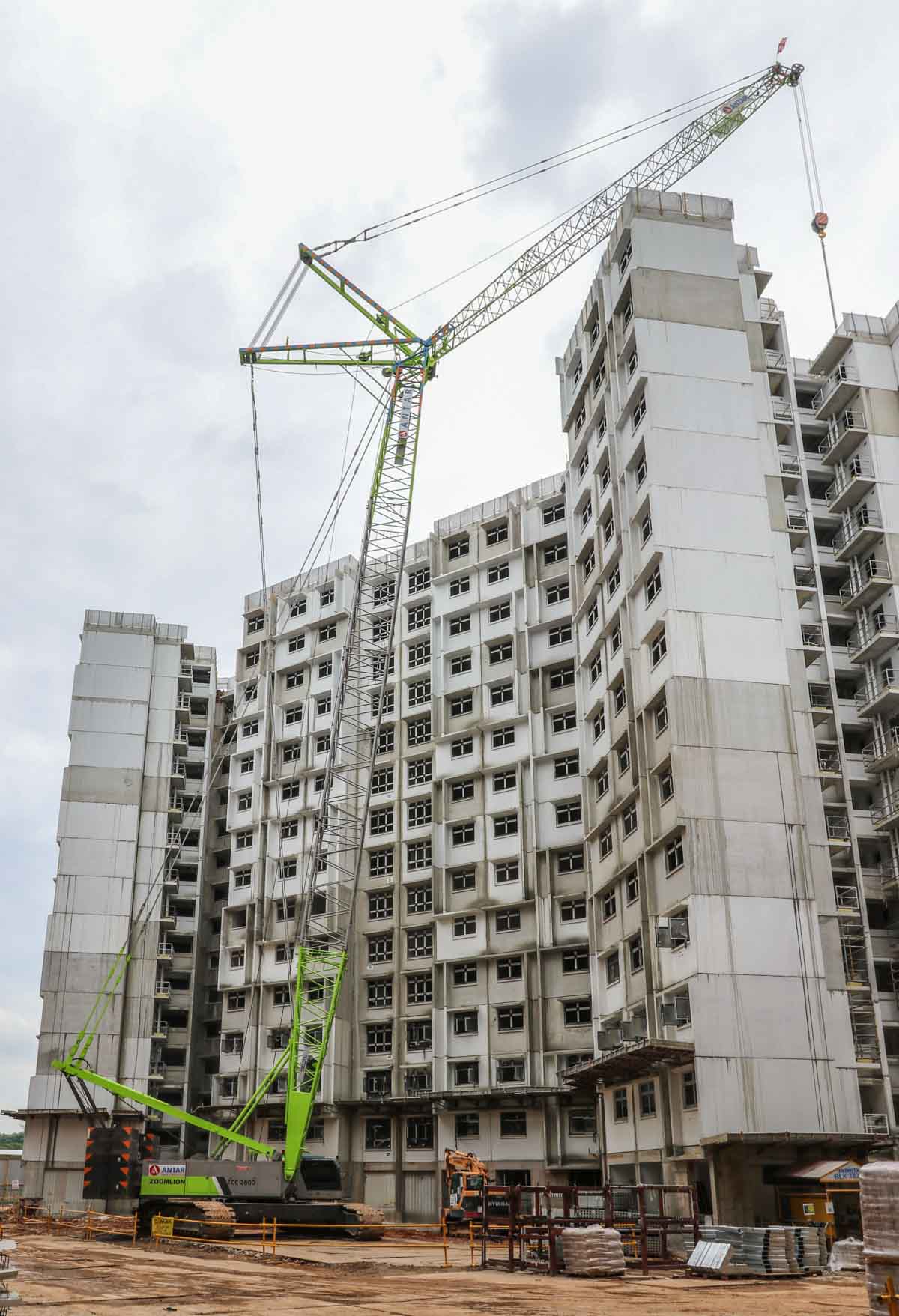 Dieser beeindruckende Zoomlion ZCC2600 gehört Antar aus Singapur (SG) und wurde dort auf einem großen Bauprojekt für die Errichtung von Wohngebäuden eingesetzt. Es handelt sich um einen Raupenkran mit einer Tragfähigkeit von 260 Tonnen aus dem Baujahr 2019.