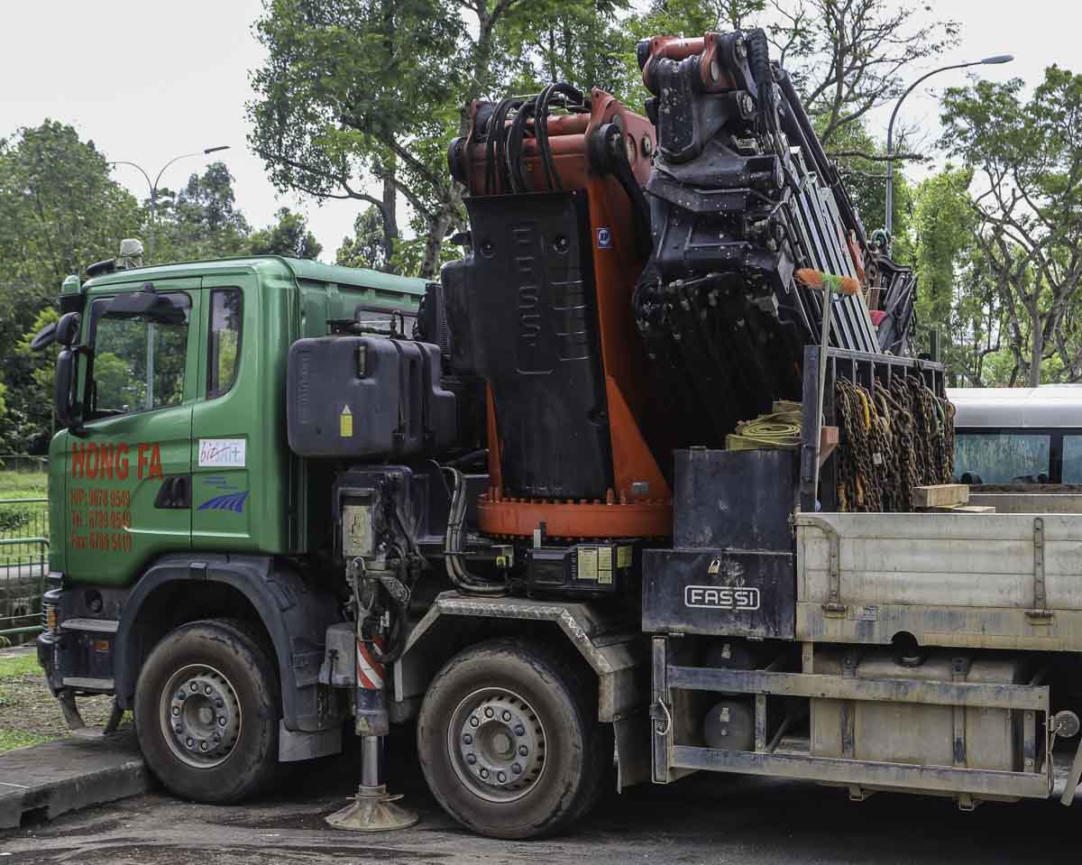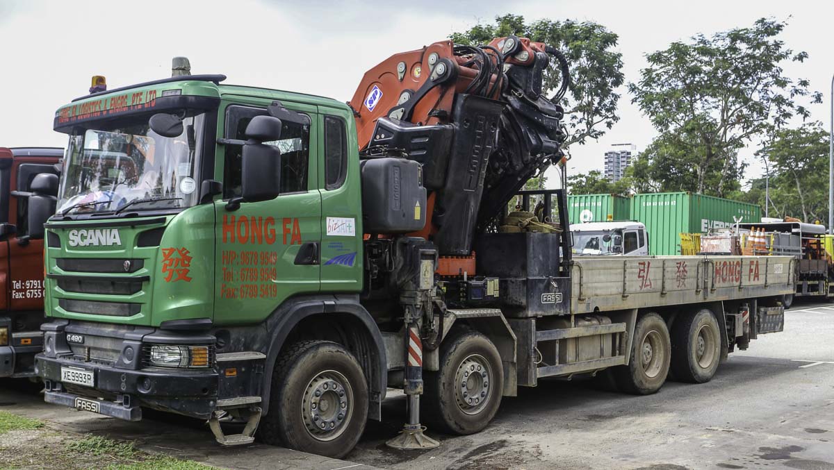 Dieser schöne Scania G 490 ist von Hong Fa aus Singapur (SG) und ist mit einem schweren Fassi F2150RA Ladekran ausgestattet. Das Fahrzeug hat Baujahr 2016 und stand an einem Feiertag auf einem großen Parkplatz geparkt.