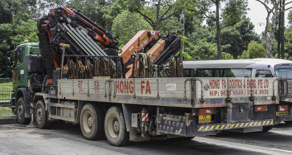 Wie gewönlich in Singapur ist dieses Fahrzeug auch mit einer großen Pritsche aufgebaut.