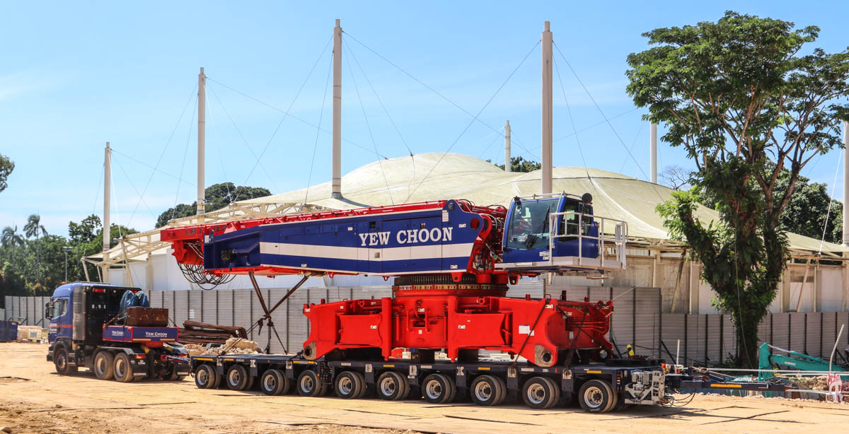 Hier wurde der schöne Scania R 620 von Yew Choon aus Singapur (SG) für den Transport eines Raupenträgers des neuen Liebherr LR 1750/2 von Yew Choon eingesetzt.