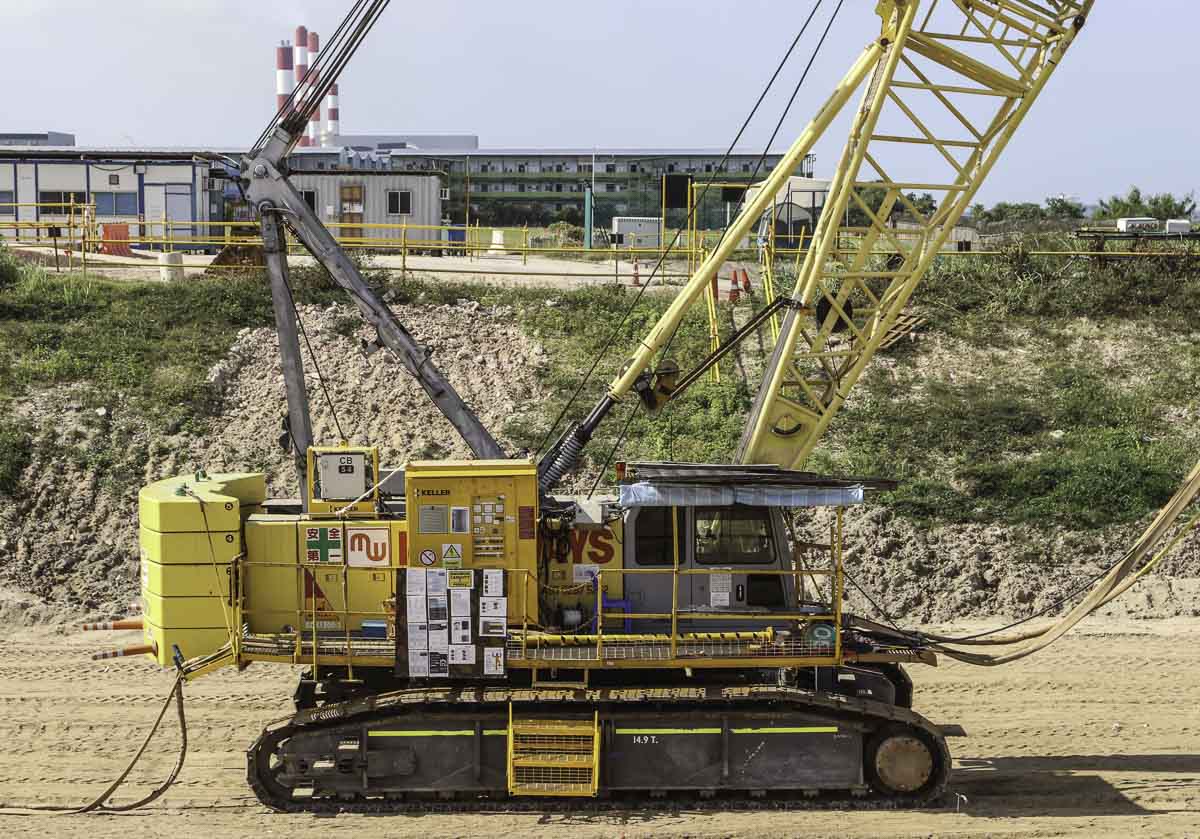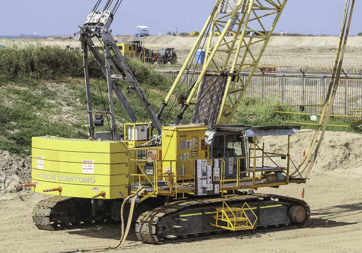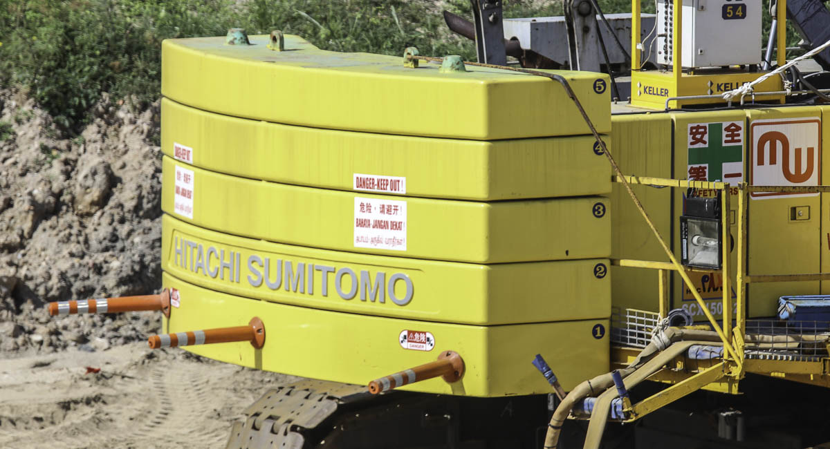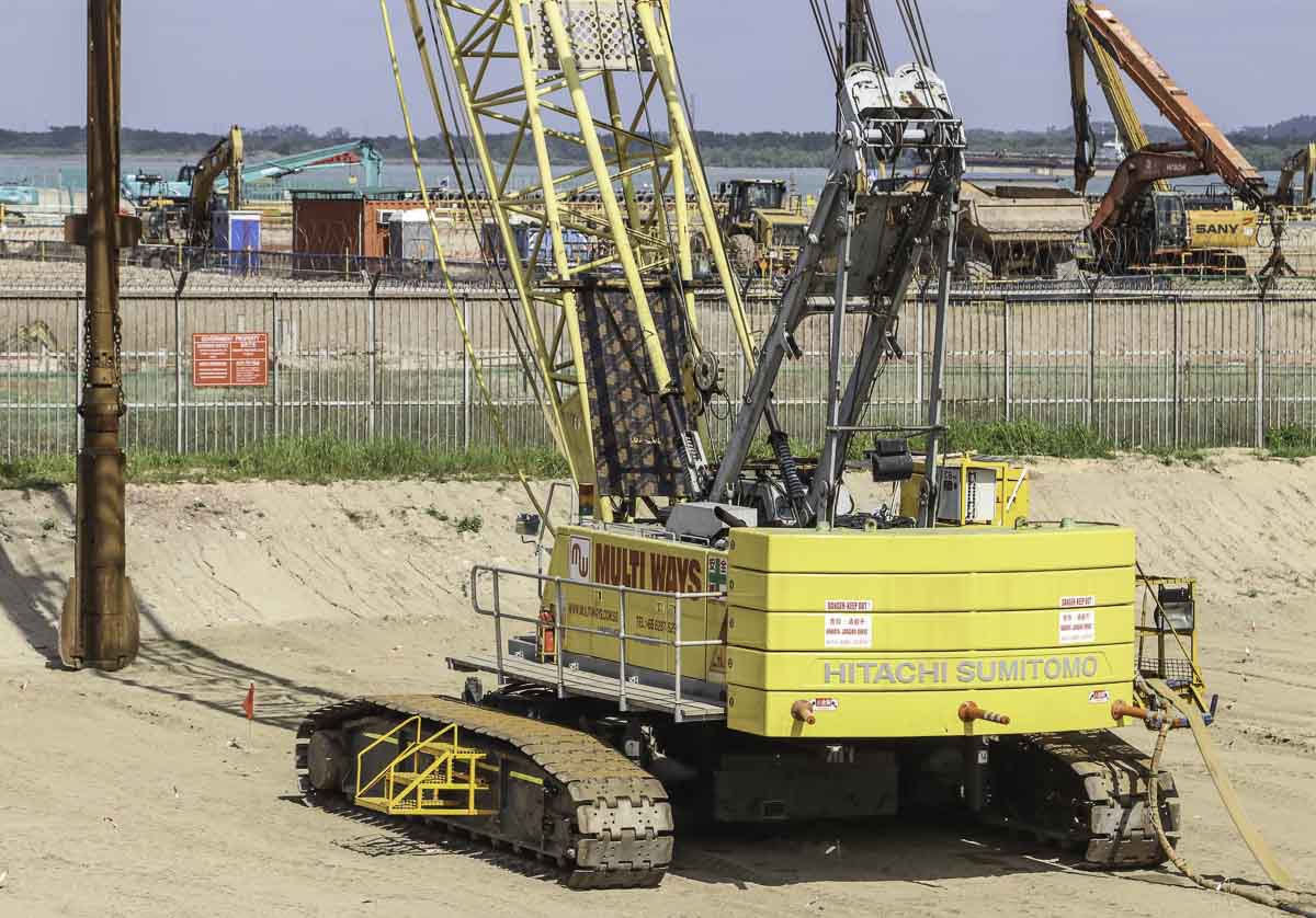 Dieser interessante Hitachi Sumitomo SCX1500-2 von Multi Ways in Singapur (SG) wurde dort von Keller mit einer Lanze zur Bodenverdichtung eingesetzt.