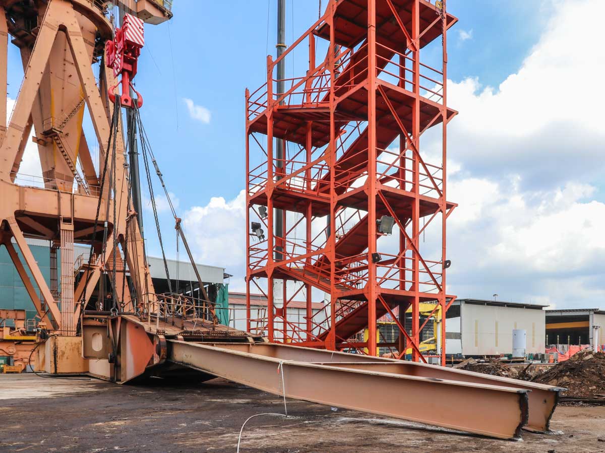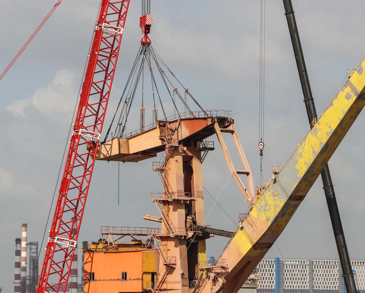 Dismantling of a wharf crane by Yew Choon and Hiap Tong