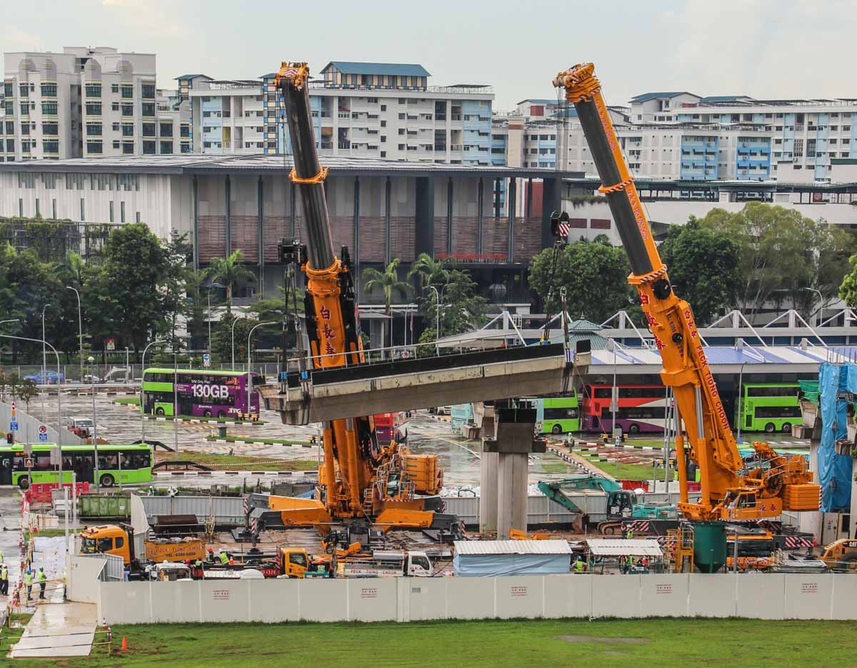 The segment is loaded onto the transport combination relatively quickly. An impressive lifting operation carried out by the professionals of Peck Tiong Choon!