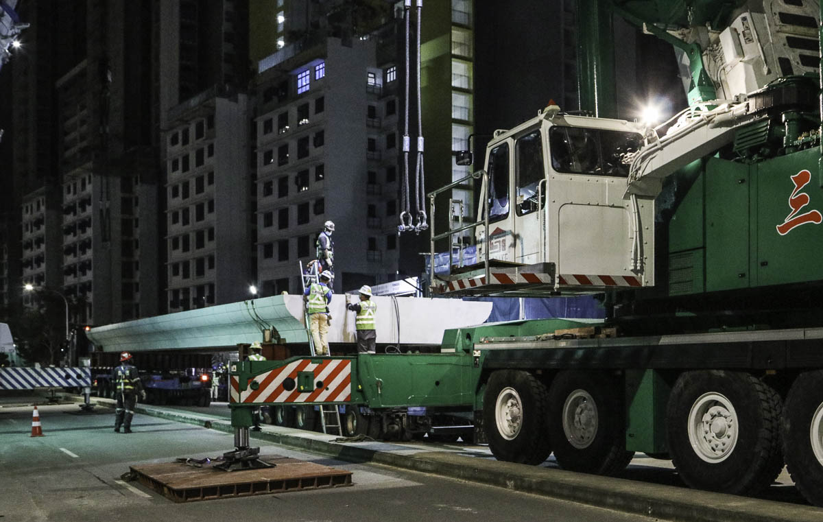 Relatively fast is the bridge positioned on top of the bearings. Bok Seng is very well experienced in such jobs.