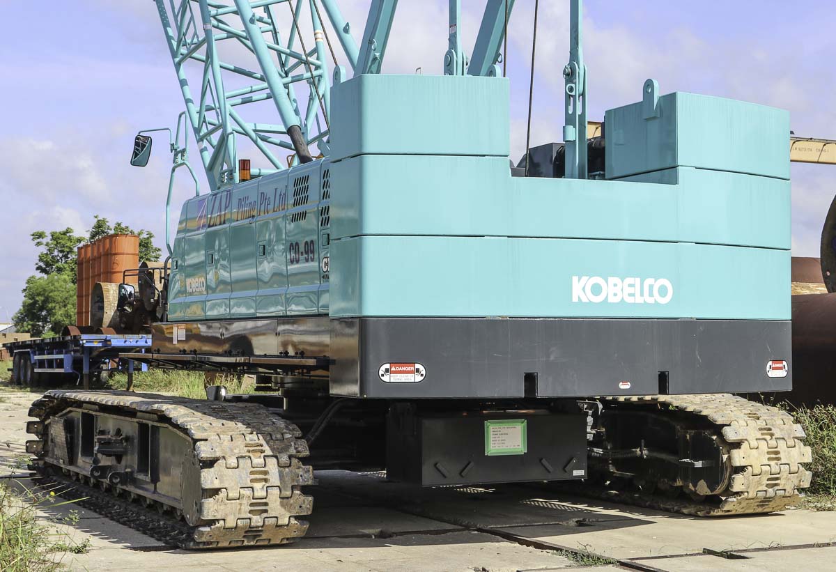 This beautiful Kobelco CKS800 belongs to ZAP Piling from Singapore (SG). The crawler crane is usually used as an auxiliary crane for foundation rigs. It is an 80-ton crawler crane built in 2021.