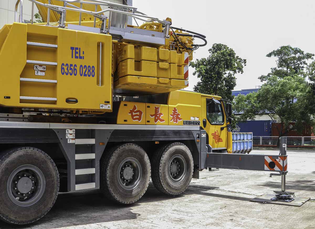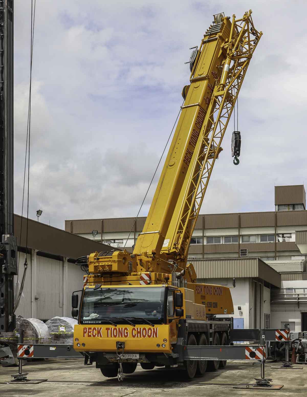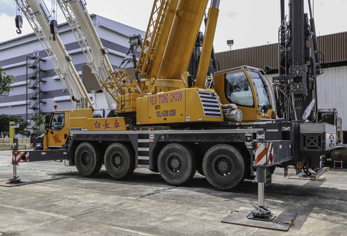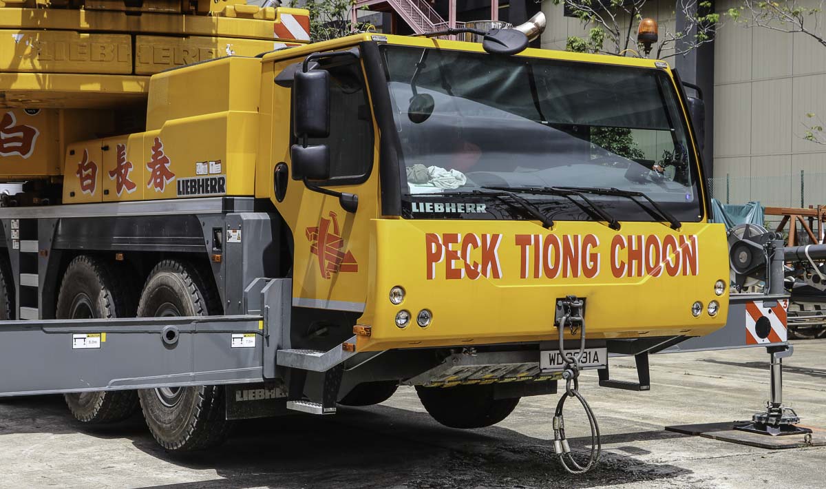 The colour scheme of Peck Tiong Choon is the same as the one of Liebherr, only the name stickers are added to the crane.