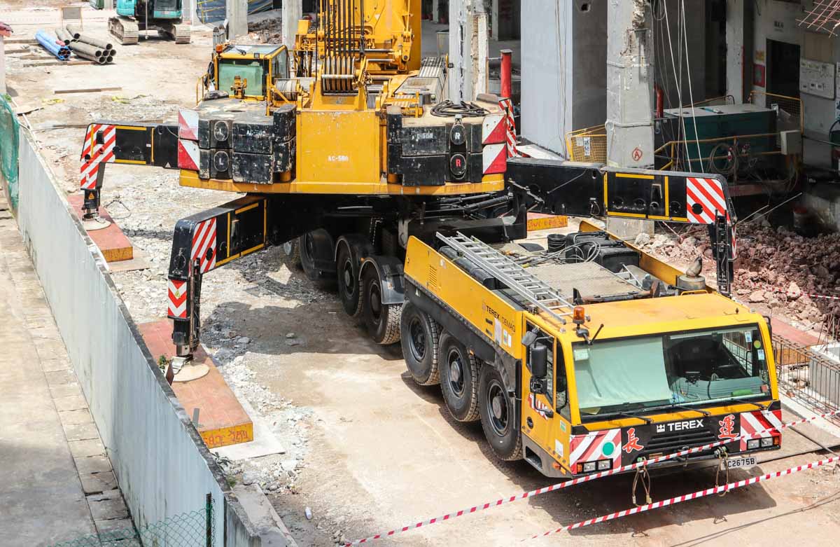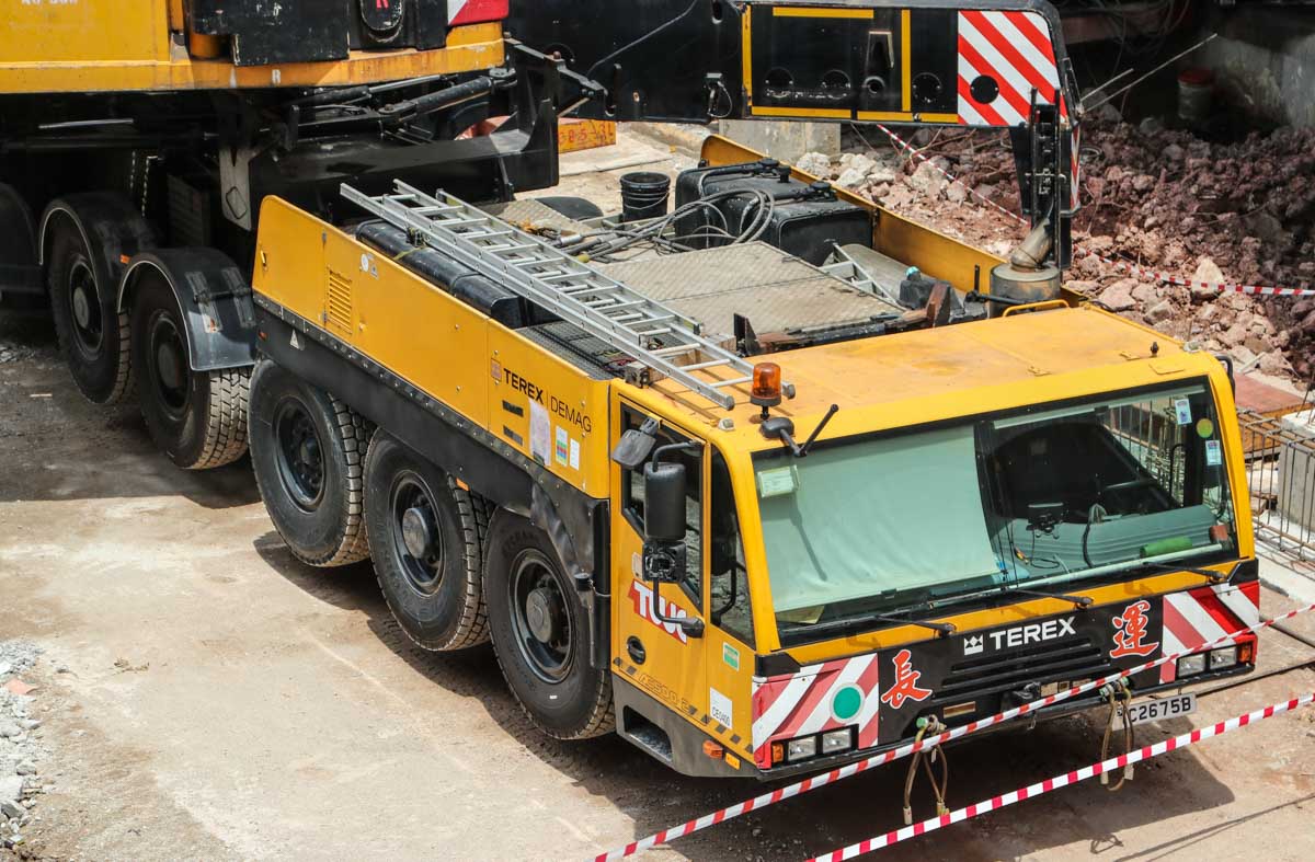 This is the second Terex AC 500-2 operated by Tiong Woon from Singapore (SG). It is a 500-tonne mobile crane mounted on an 8-axle carrier.