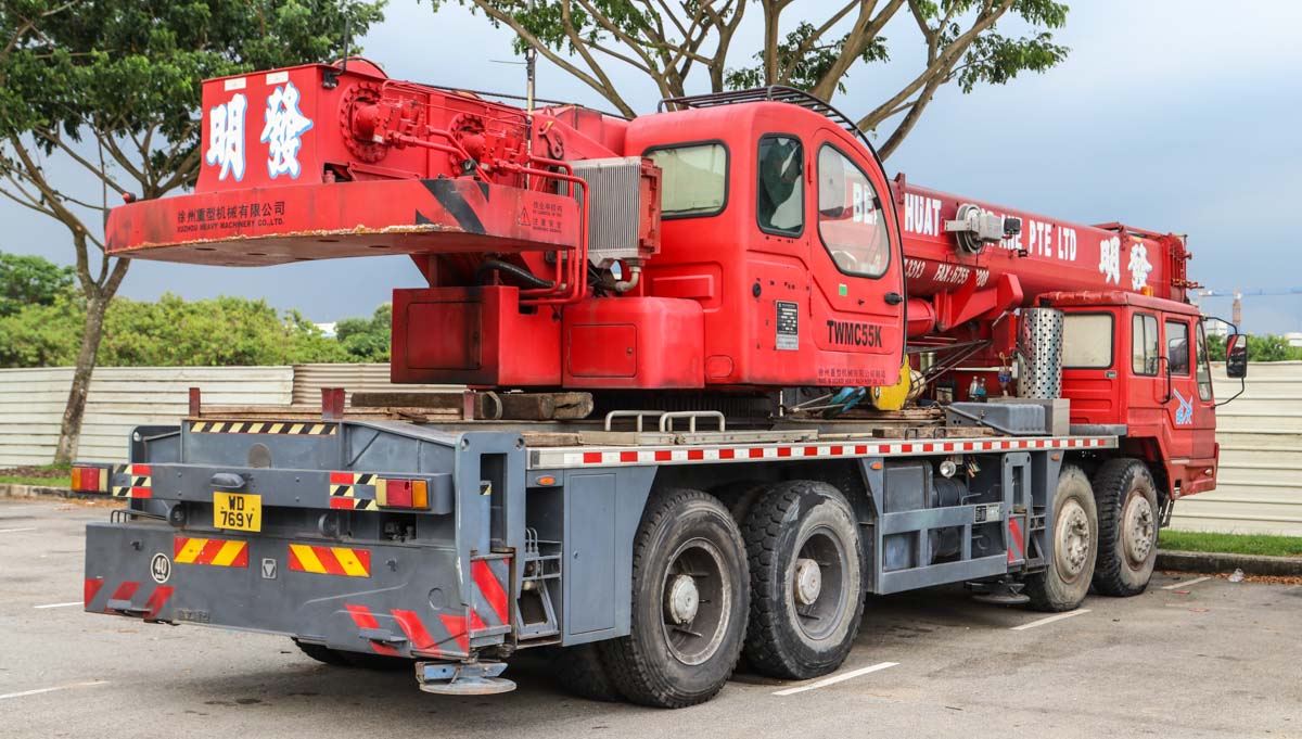 This interesting XCMG QY55BY belongs to Beng Huat from Singapore (SG). It is a 55-ton crane mounted on a 4-axle carrier. The crane was built in 2016.