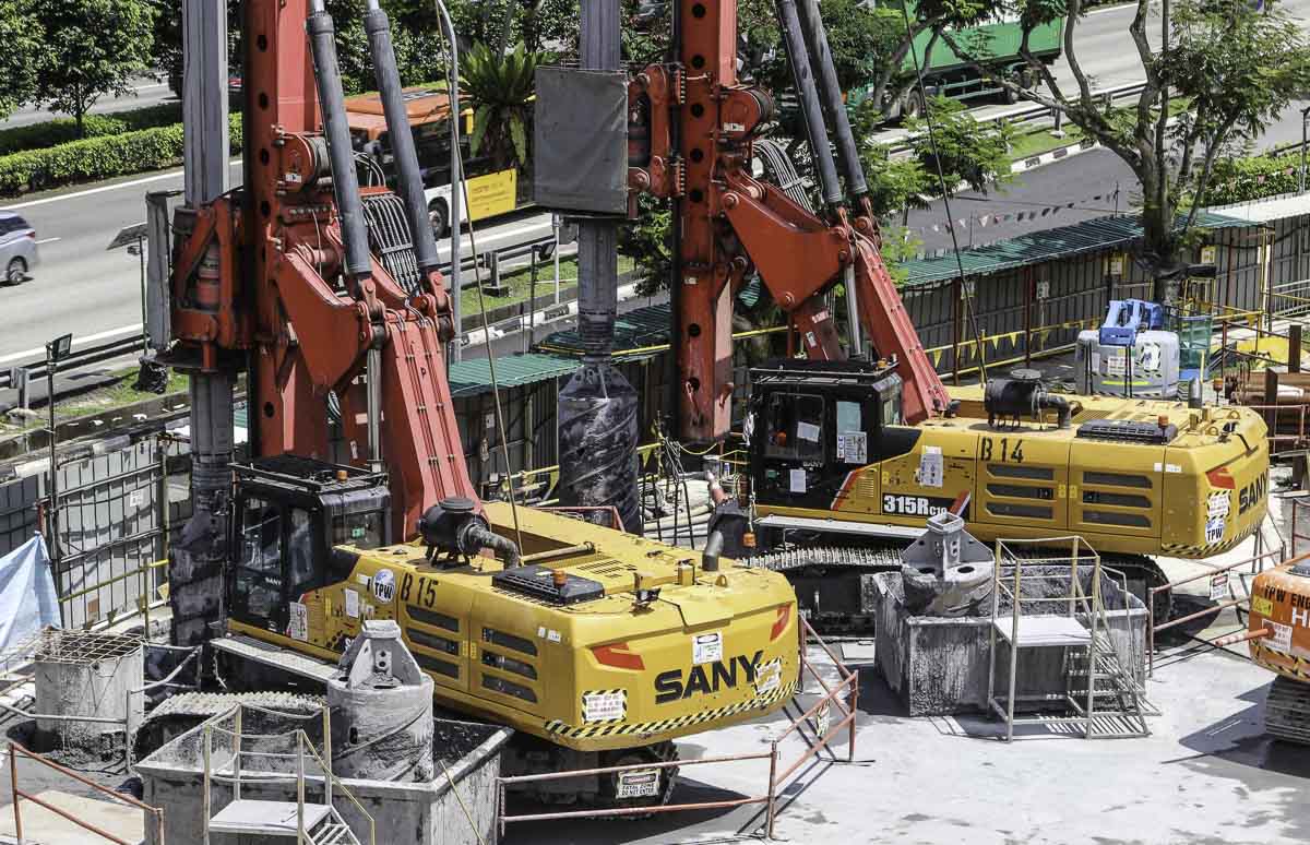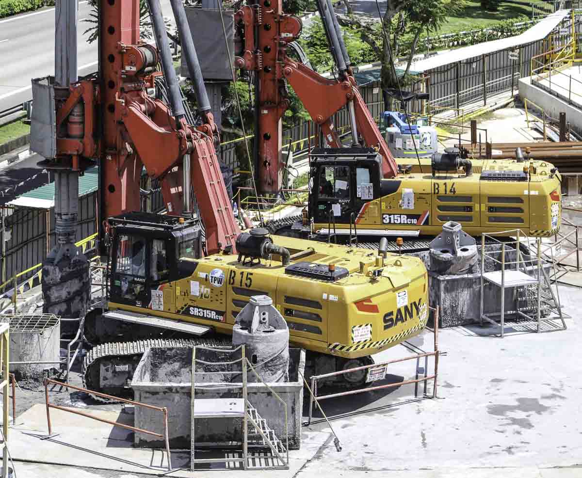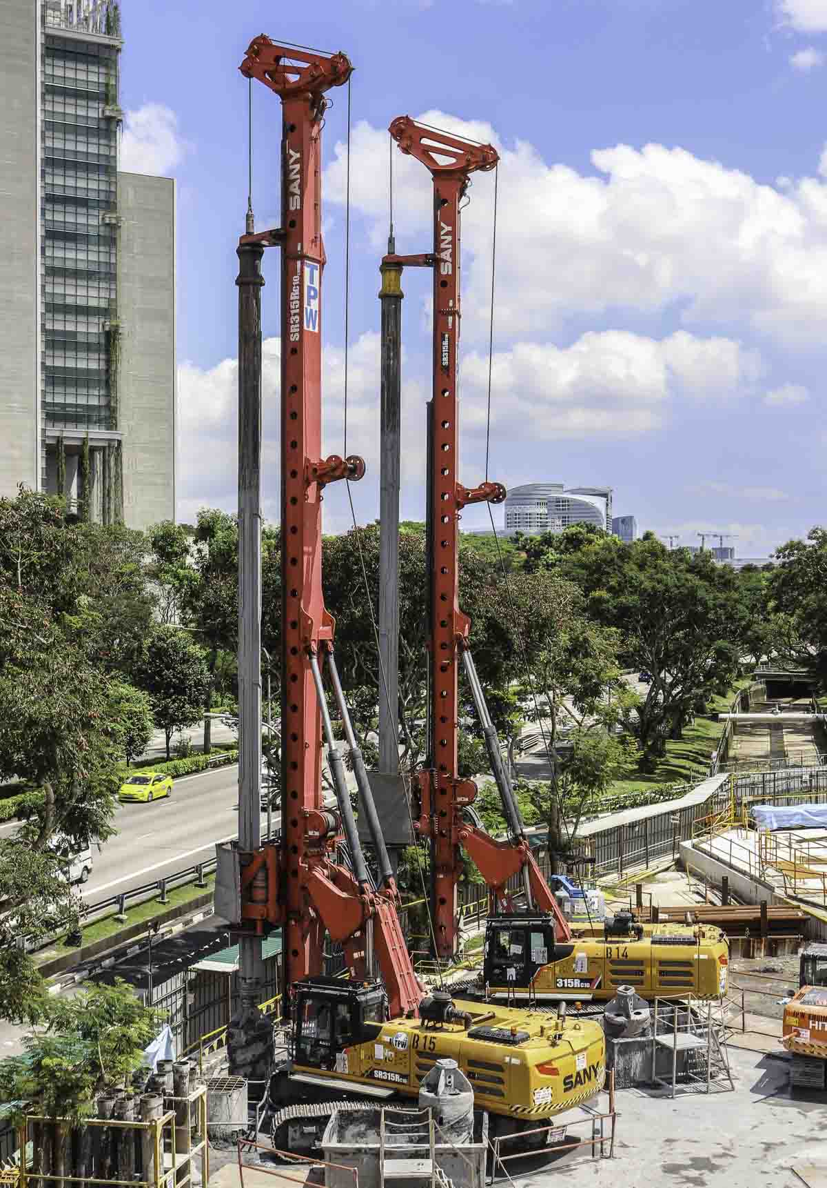 Two of these impressive Sany SR315RC10 drilling rigs of TPW Engineering from Singapore (SG) stood during a weekend next to each other on a large construction site. The year of manufacture of both rigs is 2018.