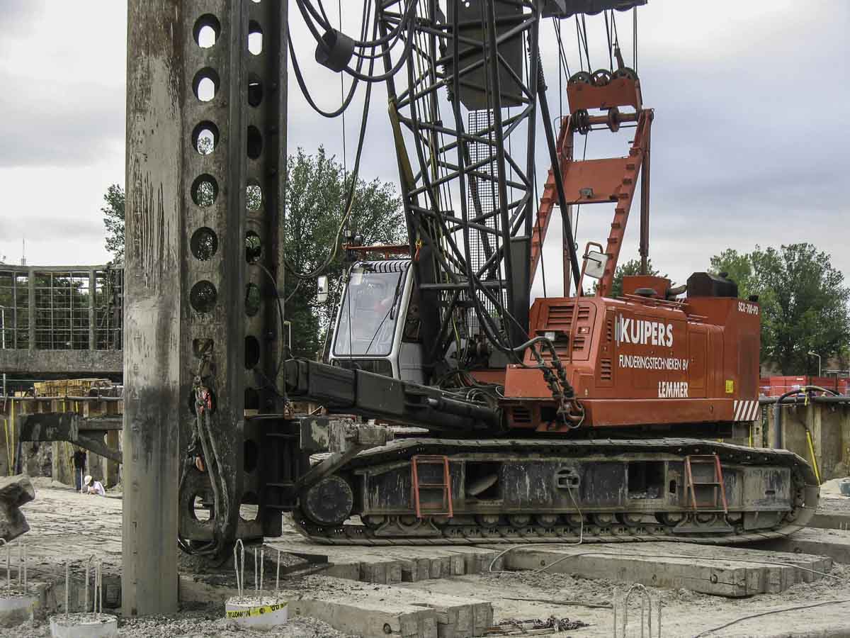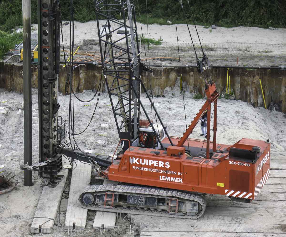Deze fraaie Hitachi Sumitomo SCX700 PD is van Kuipers uit Lemmer (NL) en werd op een grote bouwplaats in Purmerend (NL) voor het heien van vibropalen ingezet.