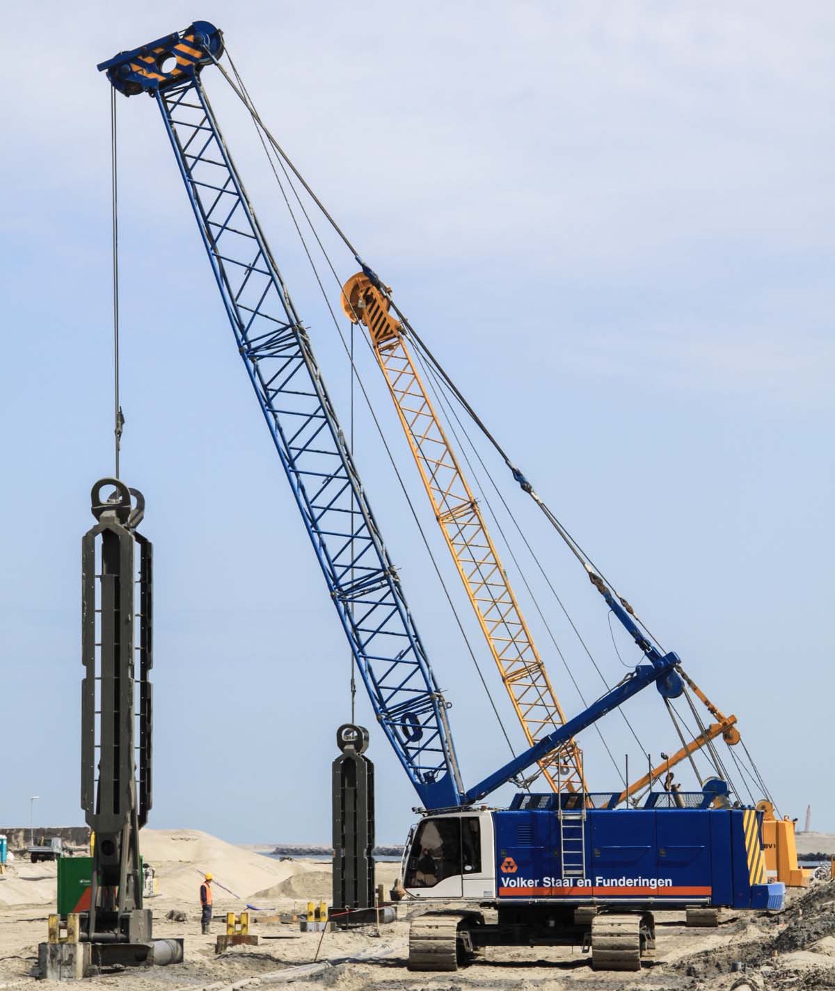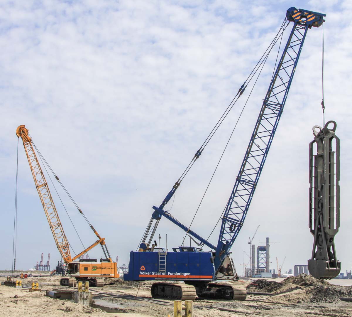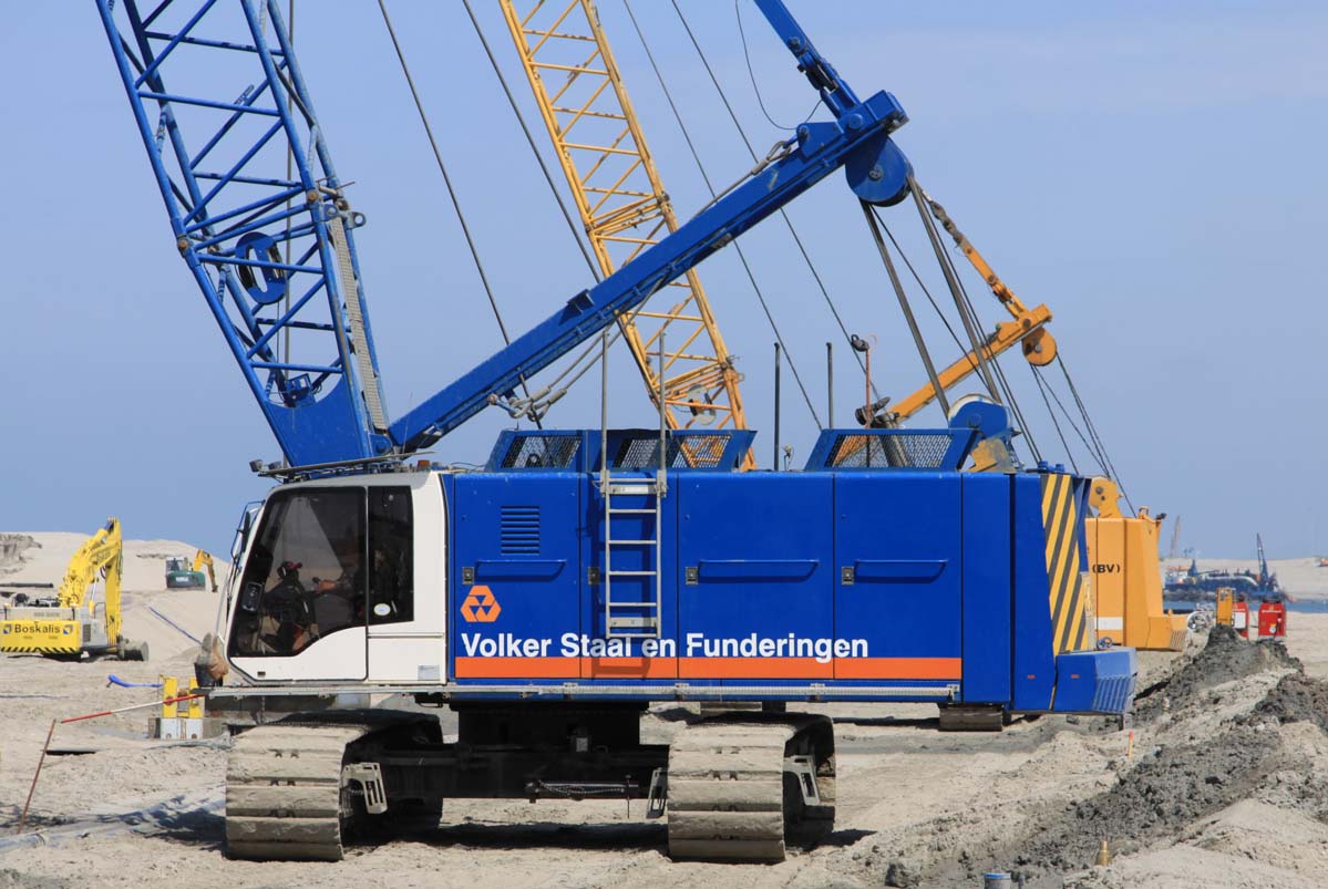 Deze Liebherr HS 875 HD van Volker Staal en Funderingen uit Dordrecht (NL) werd samen met de HS 875 HD's van BAM en Zwagerman VMT op de tweede Maasvlakte (NL) ingezet om een grote diepwanden voor kademuren te maken.