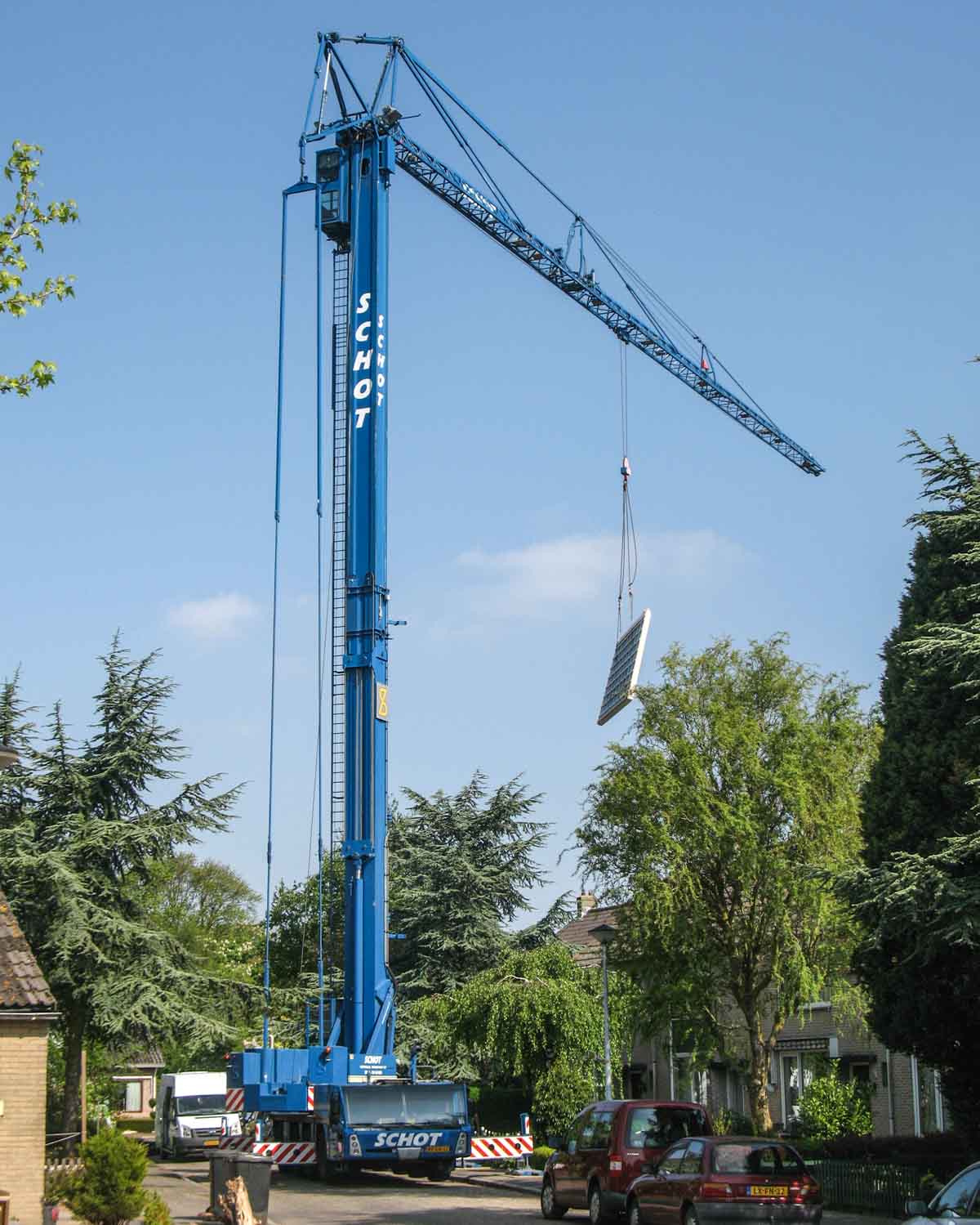 Het is een vier-assige mobiele torenkraan met een maximaal lastmoment van 103 tm en een giek van 44 meter lang.