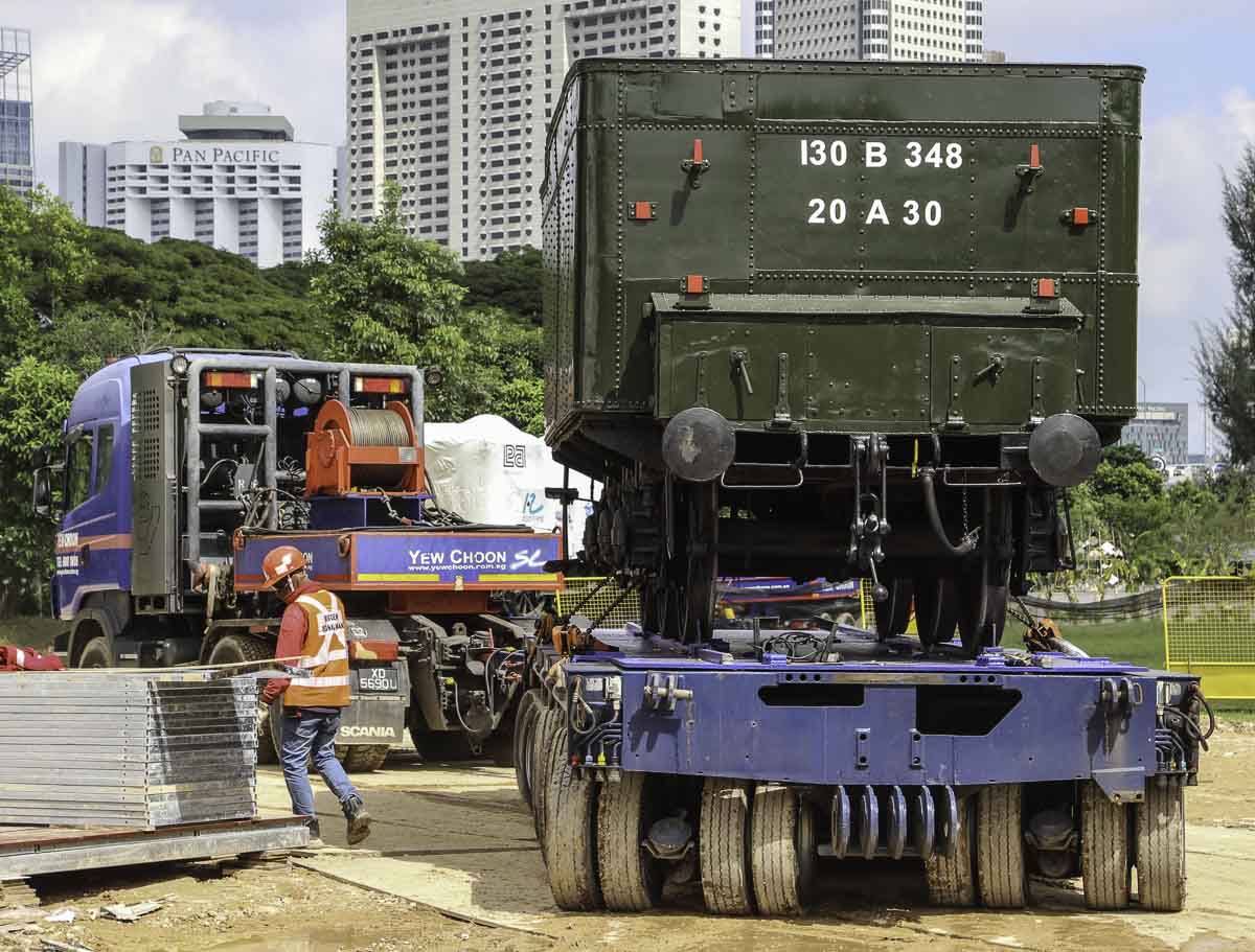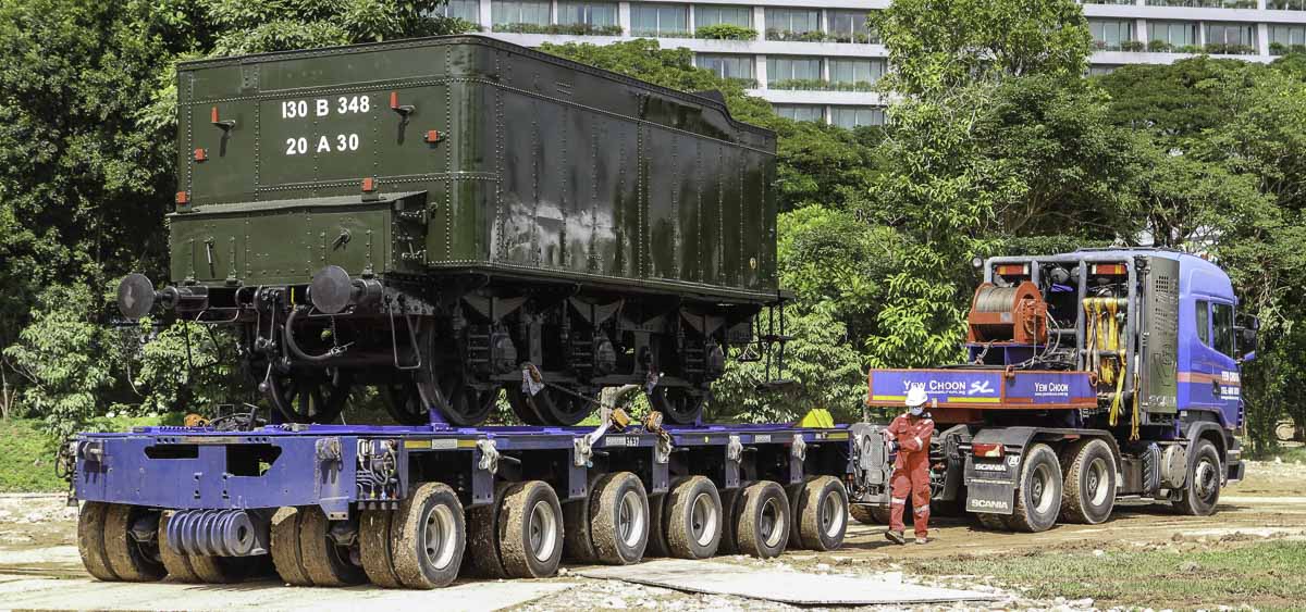 Hier werd de fraaie Scania R 620 van Yew Choon uit Singapore (SG) ingezet om een tender van een stoomtrein naar een evenemententerrein te rijden.