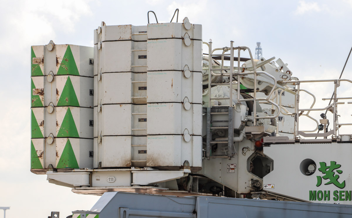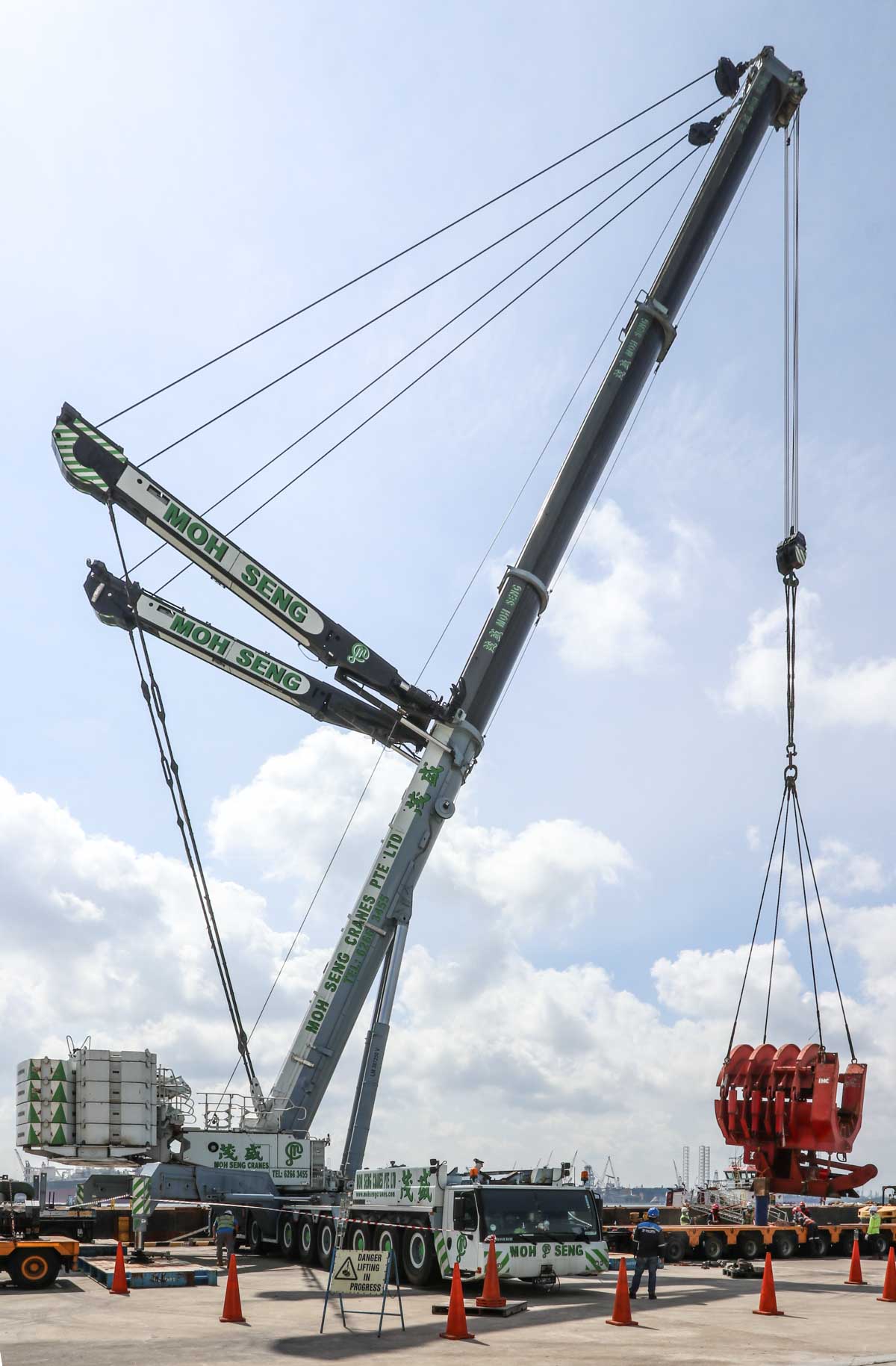Ein sehr eindrucksvoller und robuster Kran von Moh Seng! Leider setzen sie diesen Kran heutzutage nicht mehr ein, ihr größter Kran ist nun ein XCMG XCA900L8.
