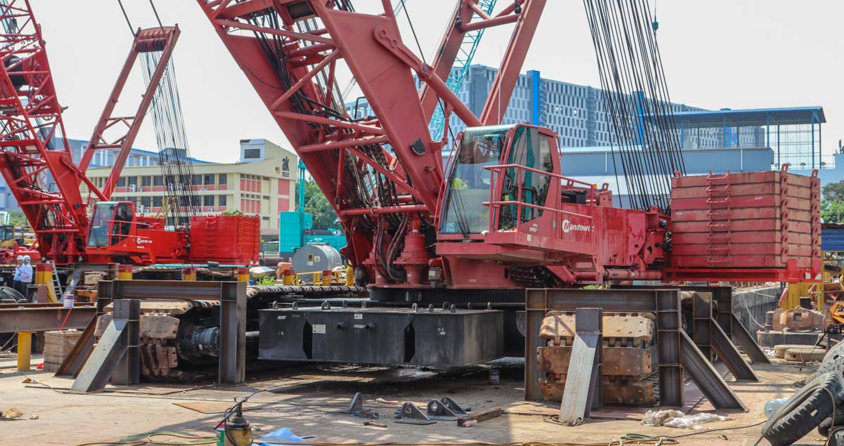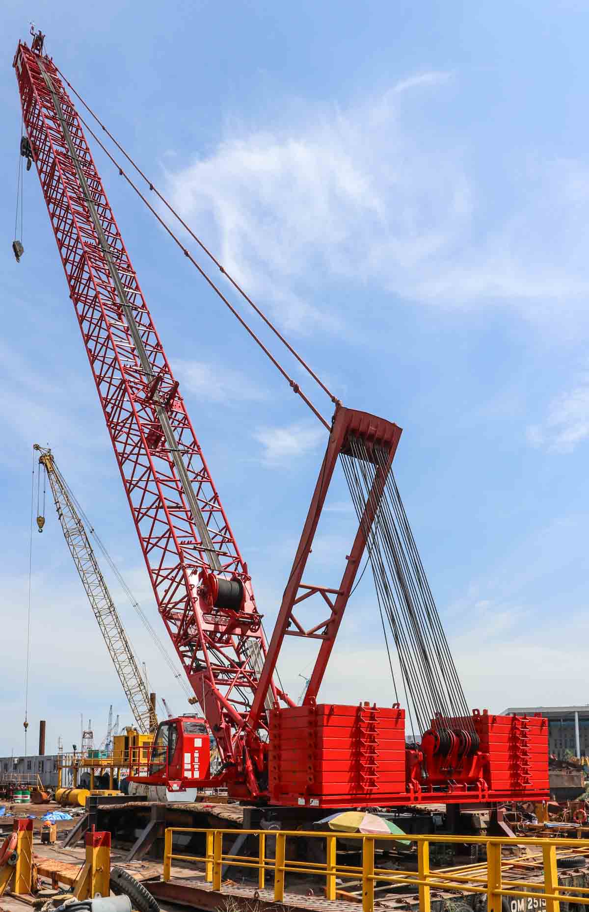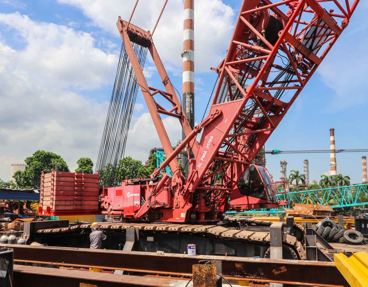 Im Jahr 2021 nahm Antara Koh aus Singapur (SG) direkt zwei dieser interessanten Manitowoc 16000 Raupenkrane in Betrieb. Beide Krane kamen gebraucht aus Malaysien und stammen aus dem Baujahr 2007. Jeder Kran wurde auf einem Ponton aufgebaut und für ein großes Projekt vor der afrikanischen Küste vorbereitet.