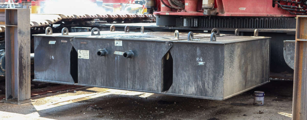 Jede Raupe ist 10,43 Meter lang, 1,52 Meter breit und 1,61 Meter hoch. Eine einzelne Raupe wiegt etwa 32,66 Tonnen. Da der Kran über See transportiert werden sollte, wurde das Untergestell mit großen Stahlrahmen gesichert.
