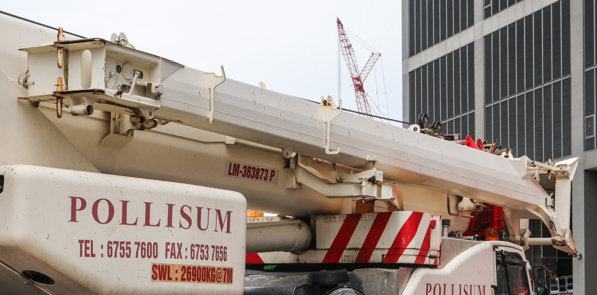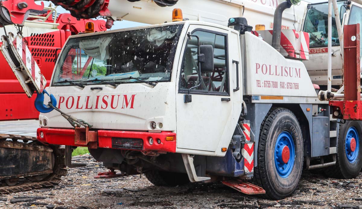 Dieser interessante Terex AC 55 L ist von Pollisum aus Singapur (SG). Es ist ein 55-Tonnen-Teleskopkran, montiert auf einem 3-achsigen Unterwagen. Das Baujahr des Krans ist 2010, wird aber erst seit 2013 von Pollisum eingesetzt.