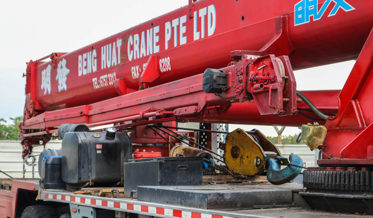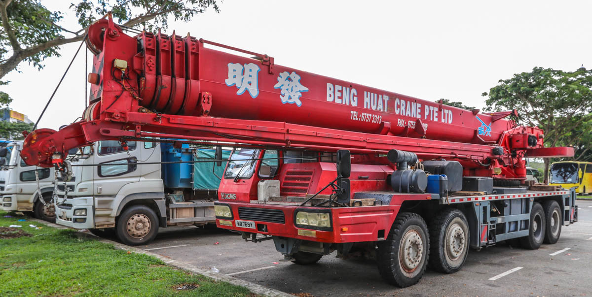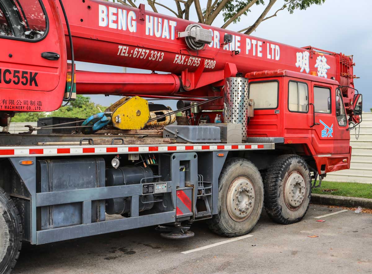 Dieser interessante XCMG QY55BY gehört zu Beng Huat aus Singapur (SG). Es handelt sich um einen 55-Tonnen-Kran, der auf einem 4-achsigen Unterwagen montiert ist. Das Baujahr des Krans ist 2016.