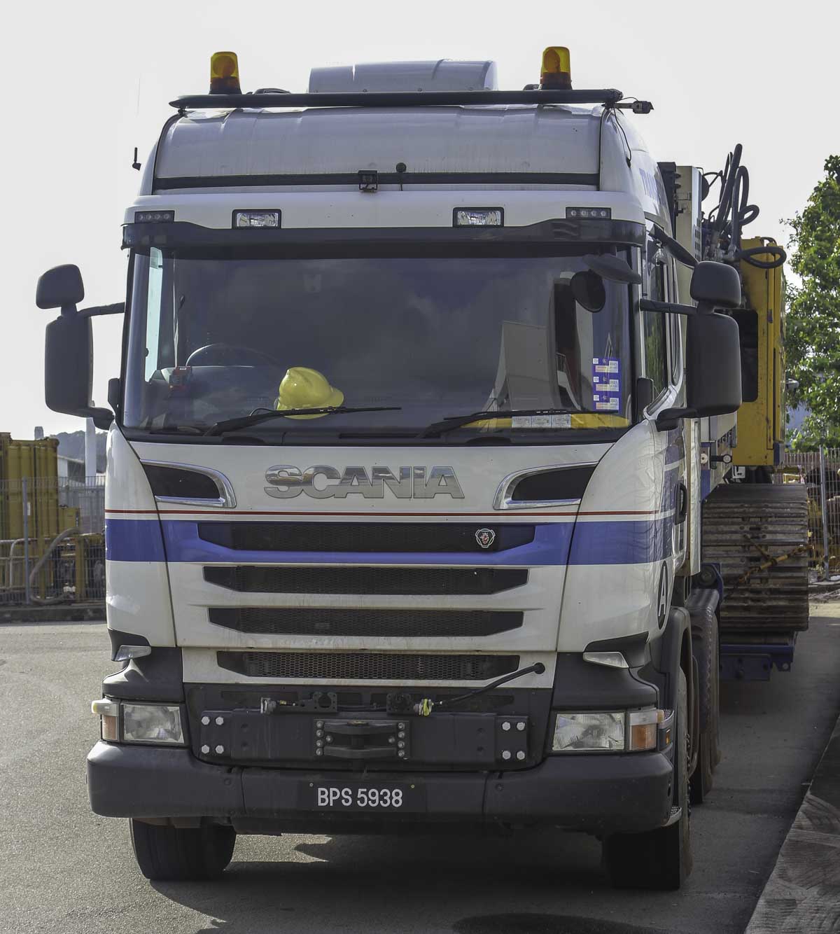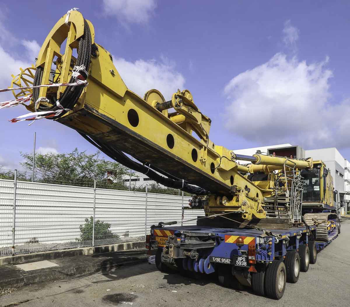 Dieser schöne Scania R 730 ist von Trans-Euro aus Sham Alam (MY) und kam nach Singapur (SG) und das Grundgerät eines großen Drehbohrgeräts abzuliefern. Die Kombination besteht aus einer 3-Achs-Sattelzugmaschine mit einem 4-Achs-Tieflader.