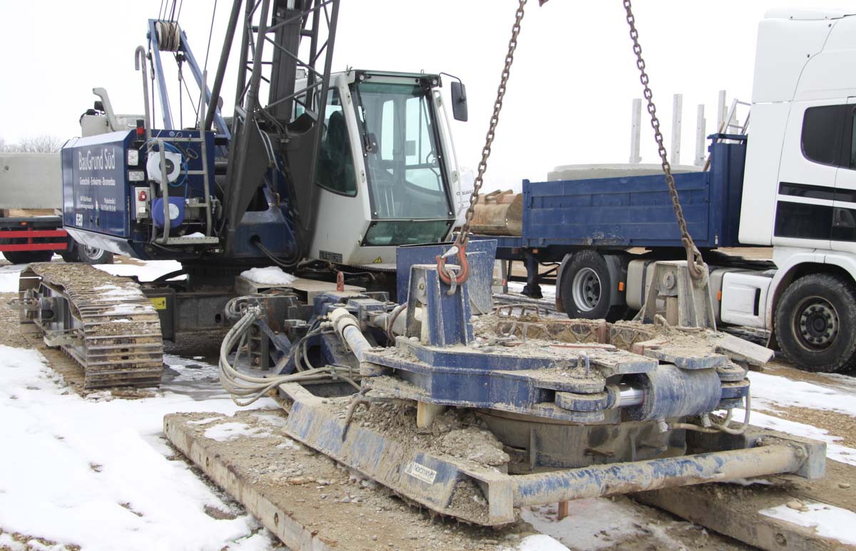 Das Rohr wird zum Schluss mit dem Bohrgreifer leer gemacht. BauGrund Süd setzt diese Maschine zum Bohren von Löchern mit 622 bis 1080 mm Durchmesser ein.