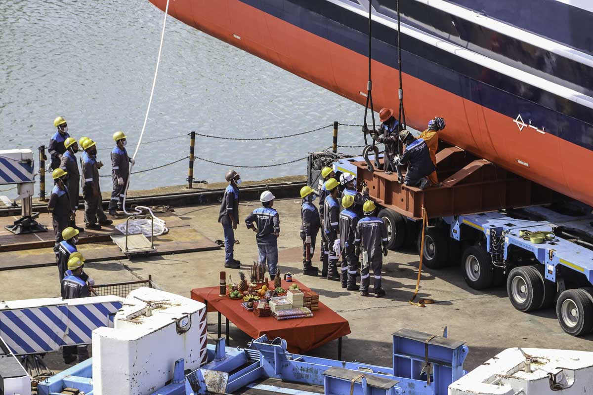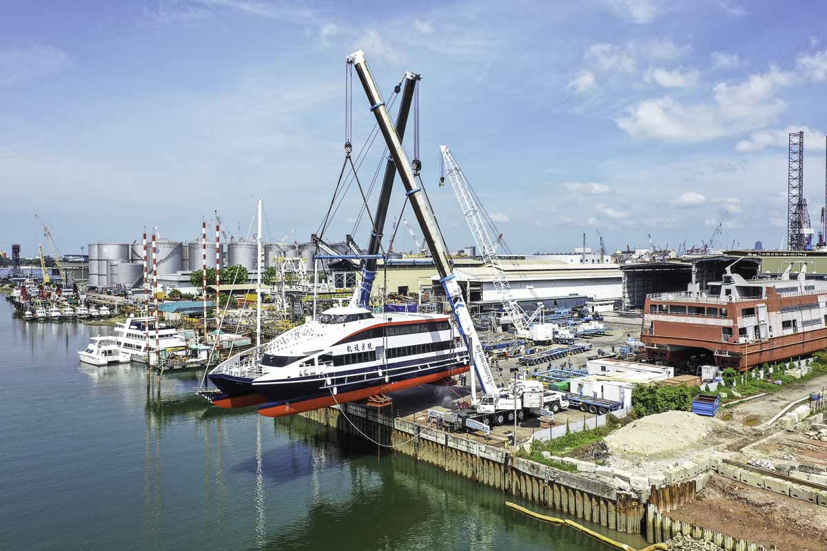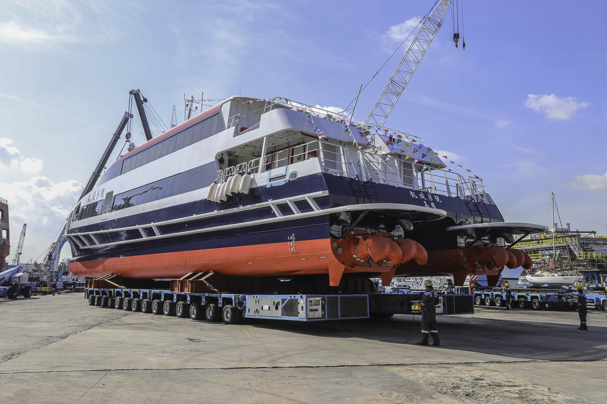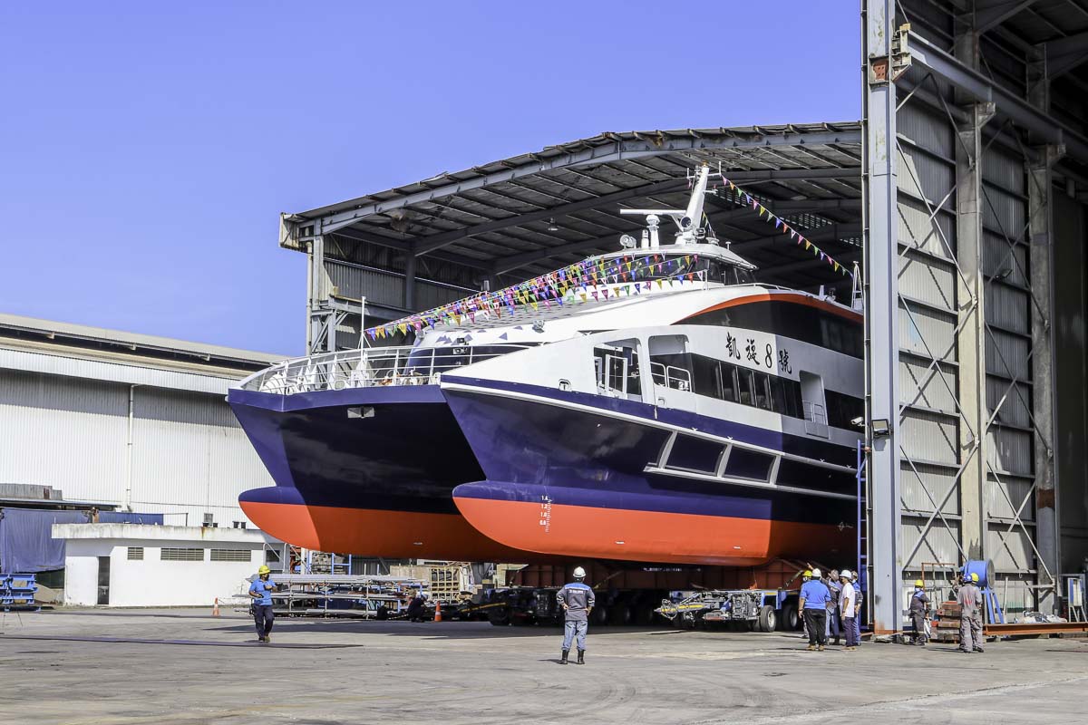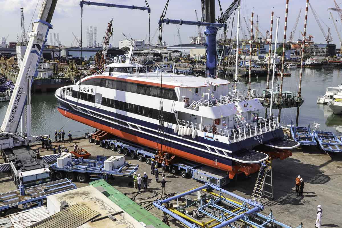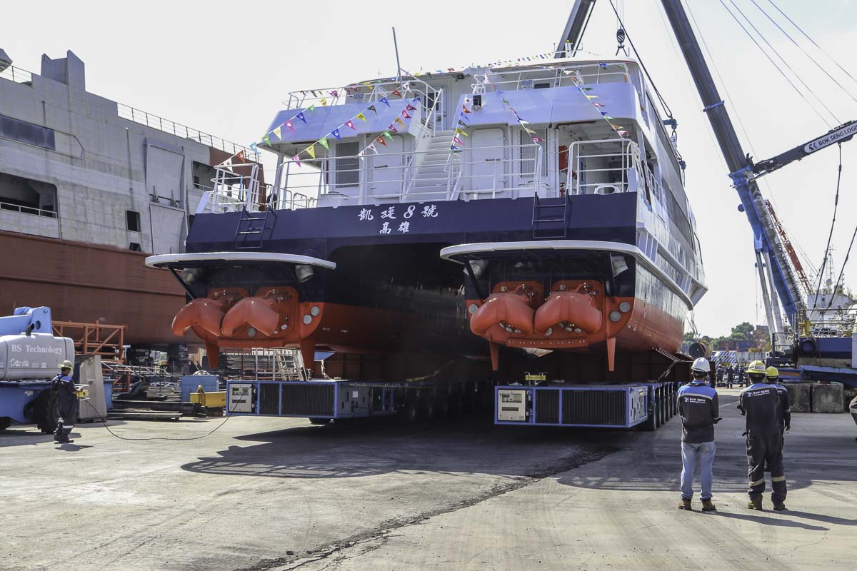 Shortly before the vessel touches the water, it must be officially blessed. After the launching, the ferry will be finished and tested, after which it will be transported to Taiwan.