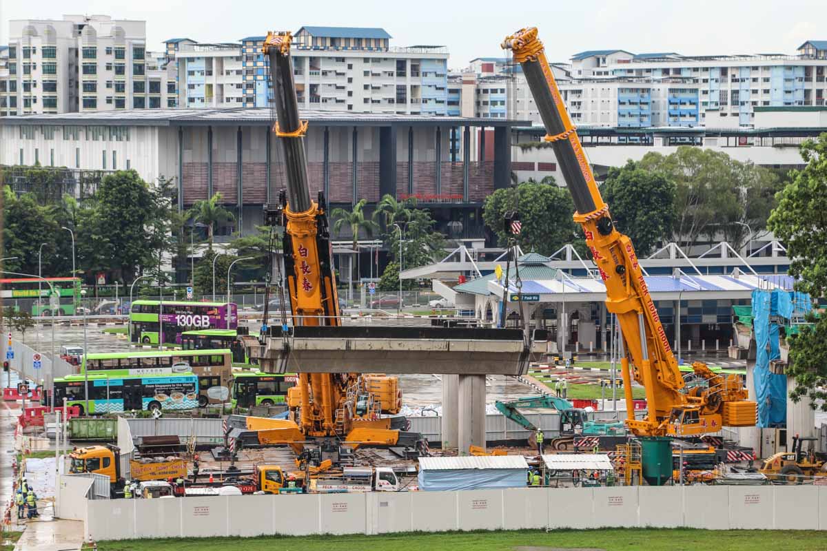 The segment is loaded onto the transport combination relatively quickly. An impressive lifting operation carried out by the professionals of Peck Tiong Choon!
