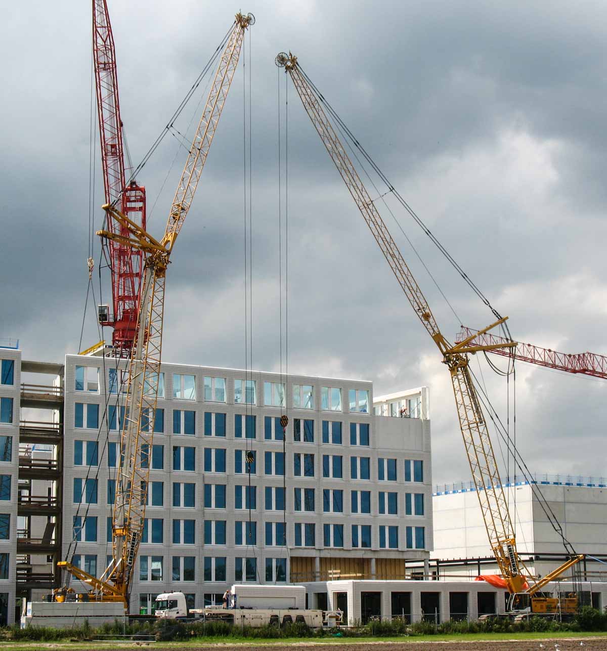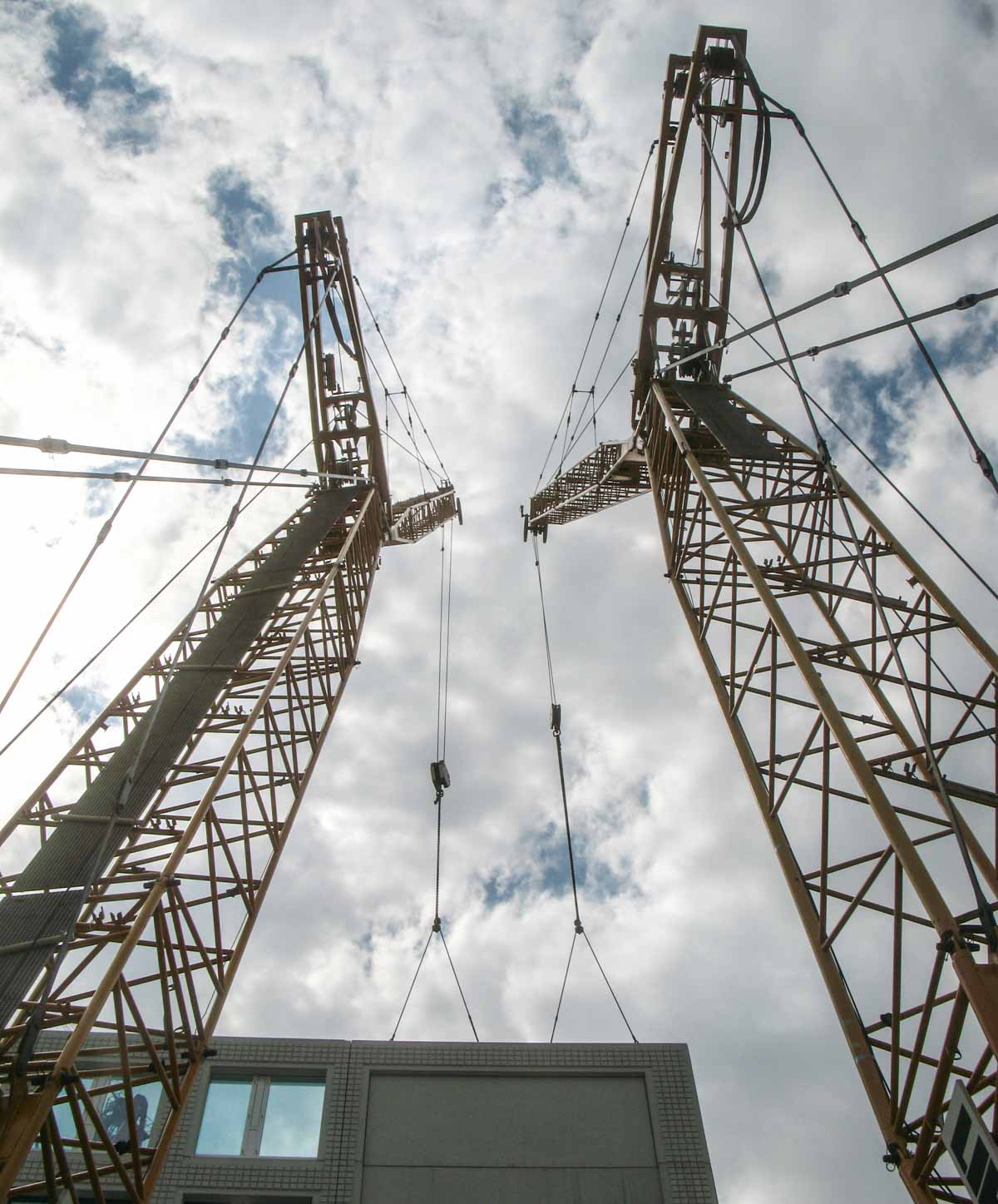 In 2009, the new headquarters and studio of Endemol in Amsterdam (NL) were built using prefabricated concrete elements. Certain elements were too heavy to be installed with a single crane, therefore a tandem lift was chosen for the installation of a corner element.