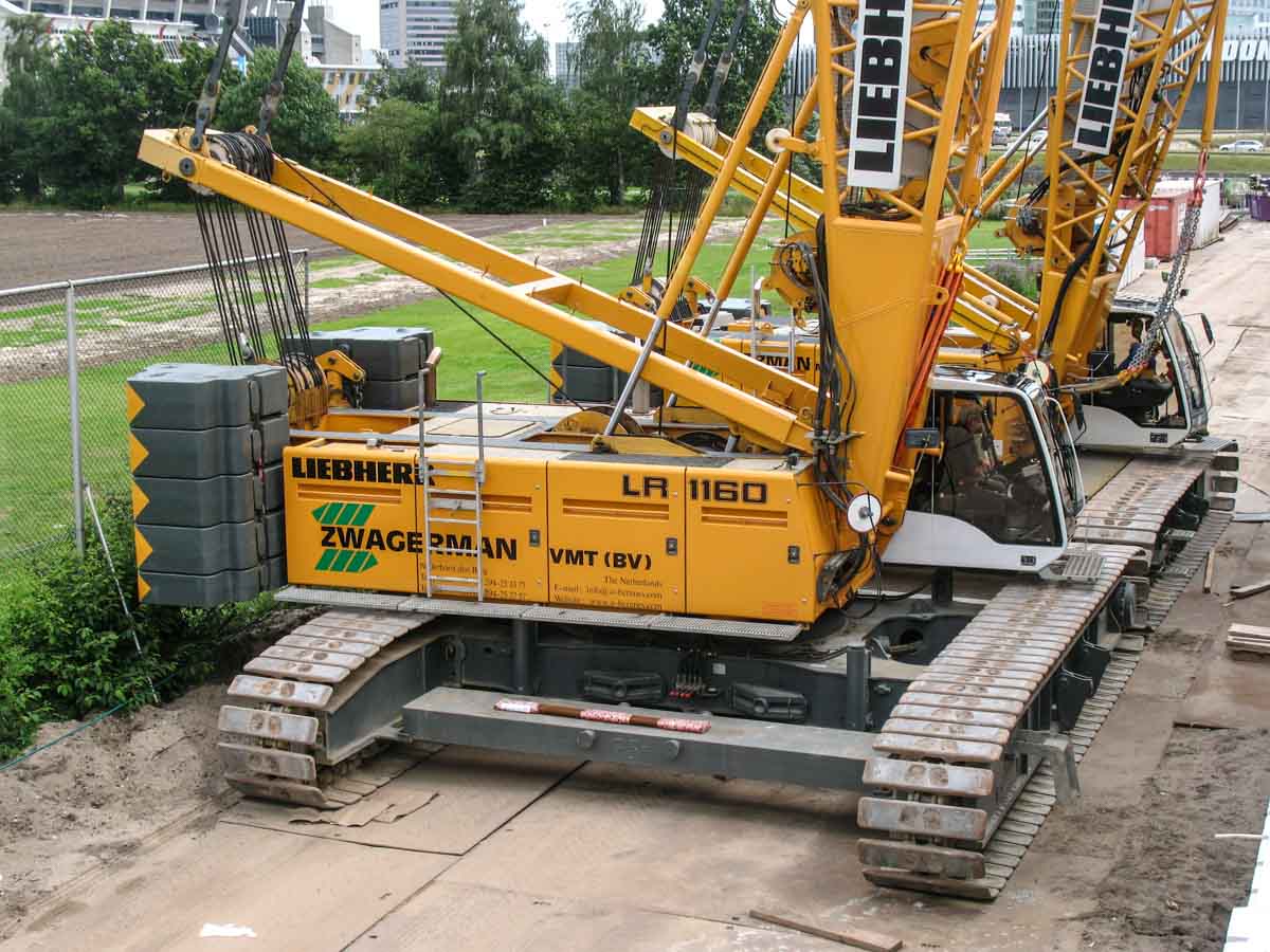 The cranes used for this task were the Liebherr LR 1130 and the Liebherr LR 1160, both owned by Zwagerman VMT from Nederhorst den Berg (NL). Both cranes were deployed on this project, but for this lift they were positioned facing each other.