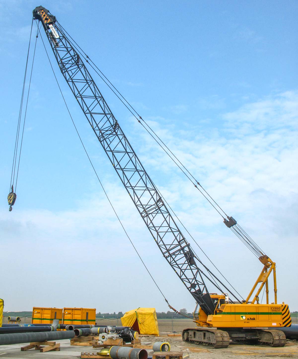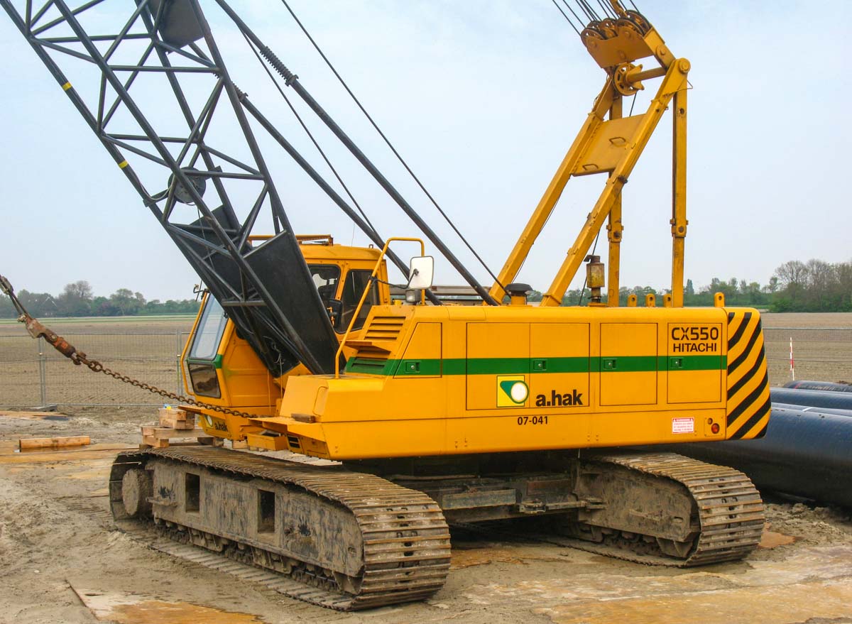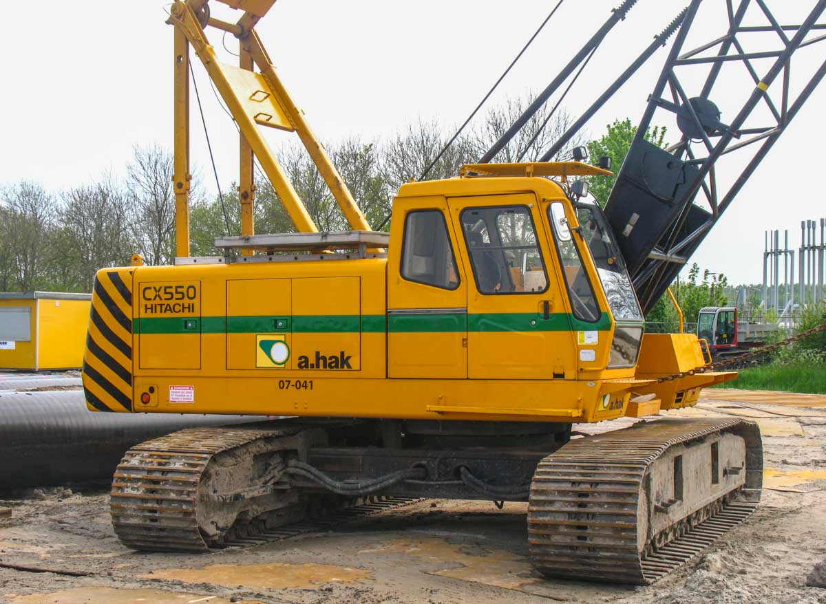 This fine Hitachi CX550 belongs to A.Hak from Tricht (NL) and was deployed on a job in Opperdoes (NL). It is a 55-tonne crawler crane.