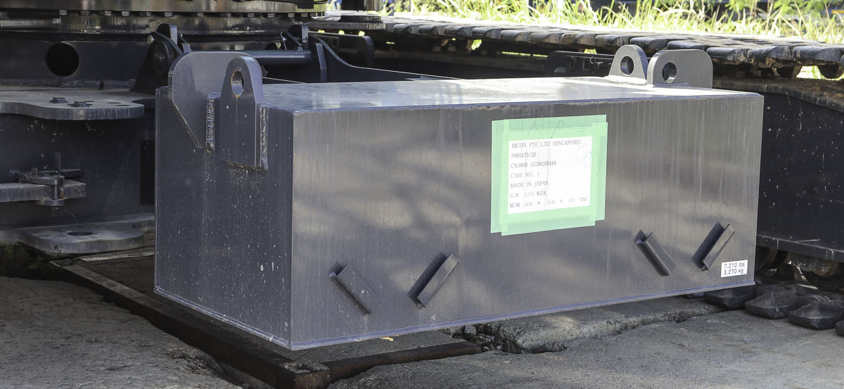 The superstructure is fitted with a five-part counterweight, with a total weight of 27.2 tons. The ballast has a turning circle of 4.3 meters.