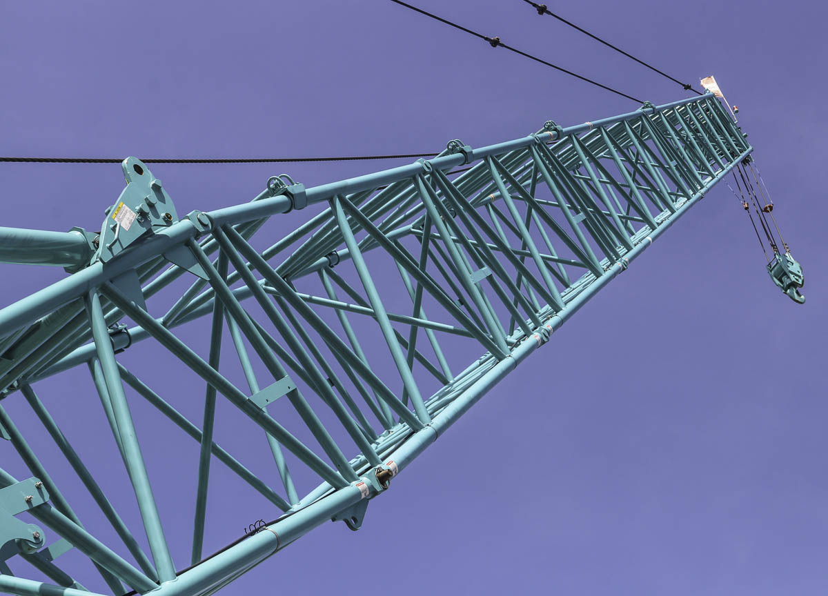As usual, both hoists were in use. A fixed jib with a minimum length of 6.1 meters and a maximum length of 18.3 meters can also be optionally mounted on the main boom.