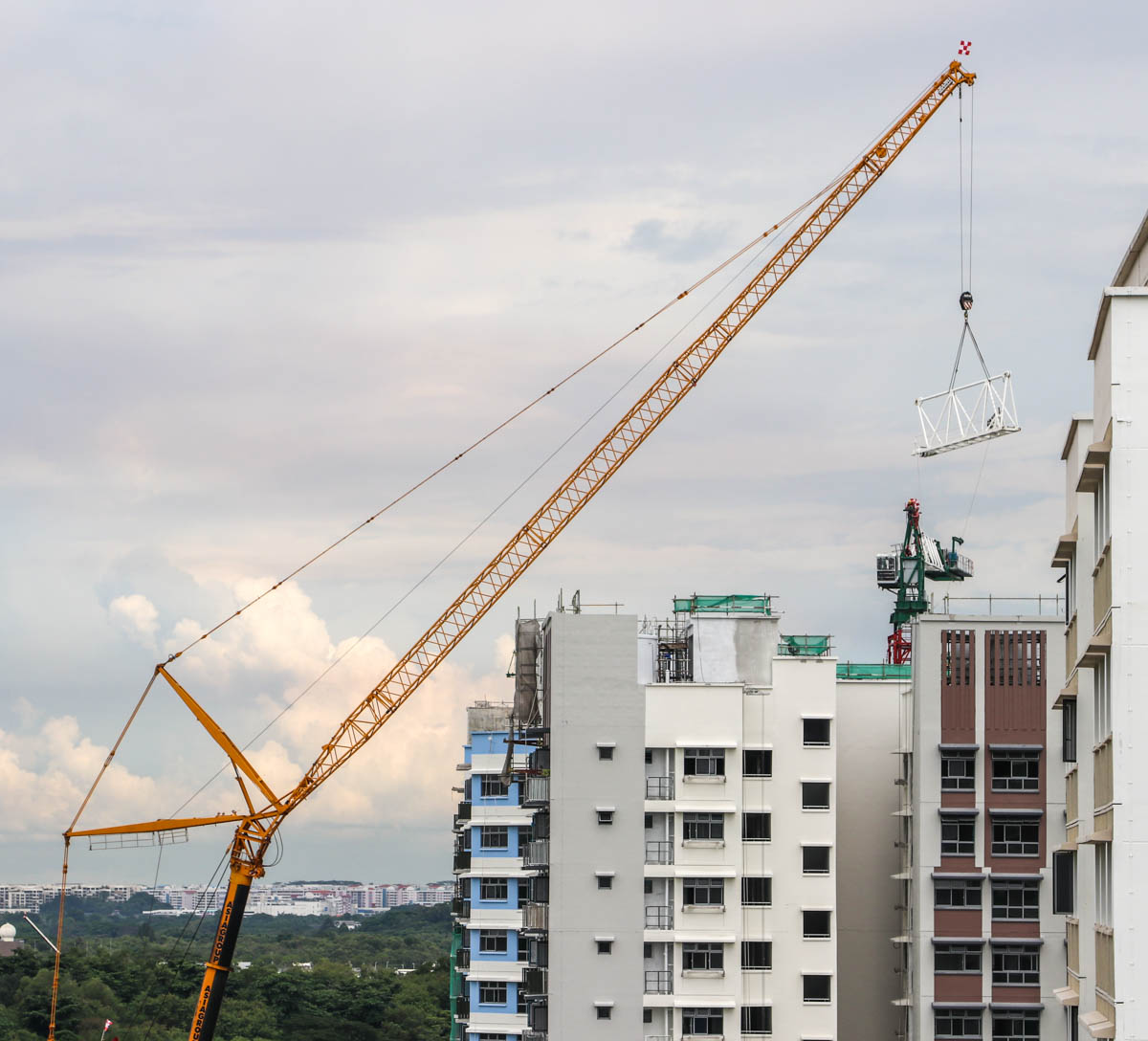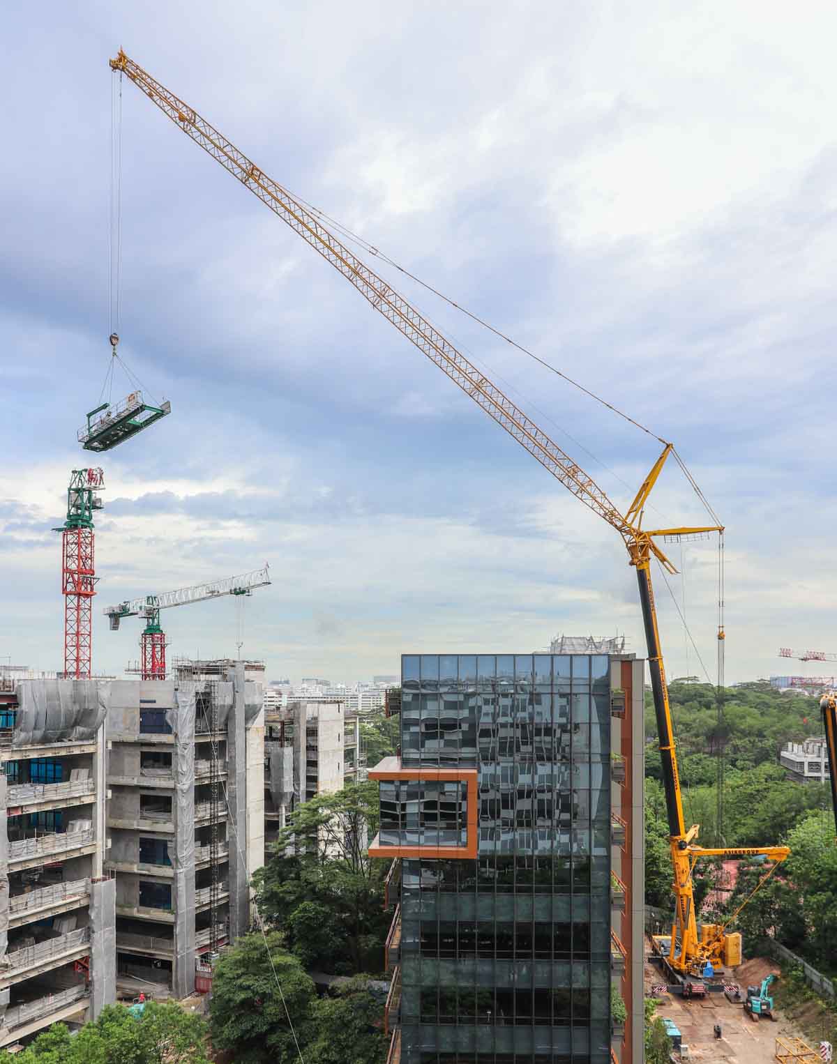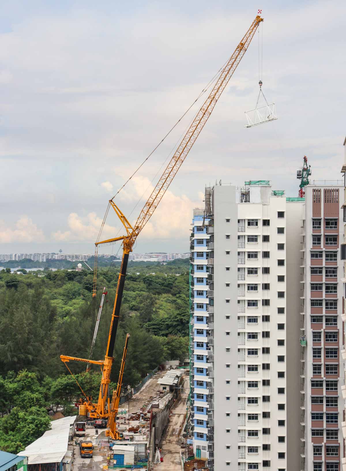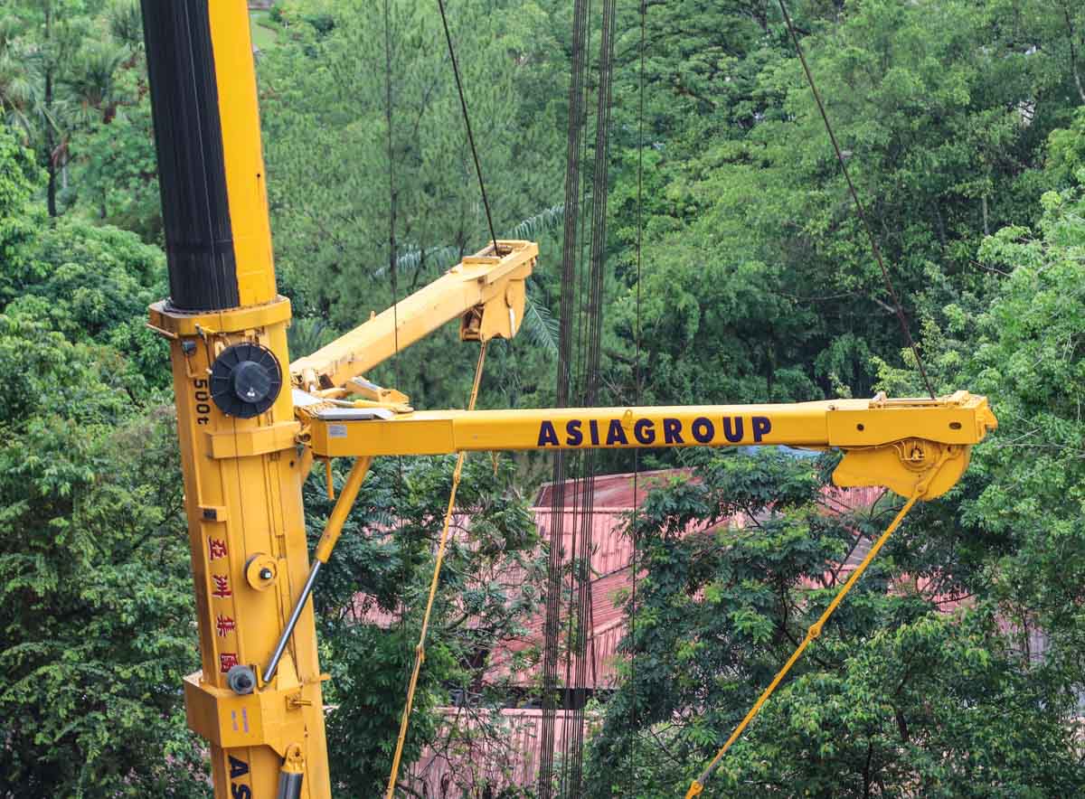 Here, the counter jib of the Yongmao tower crane was lifted off. An impressive operation by Asiagroup!