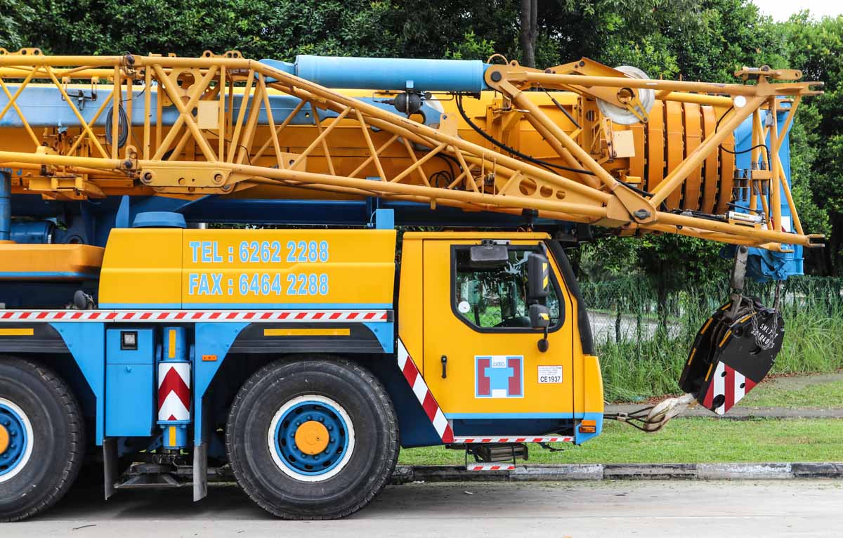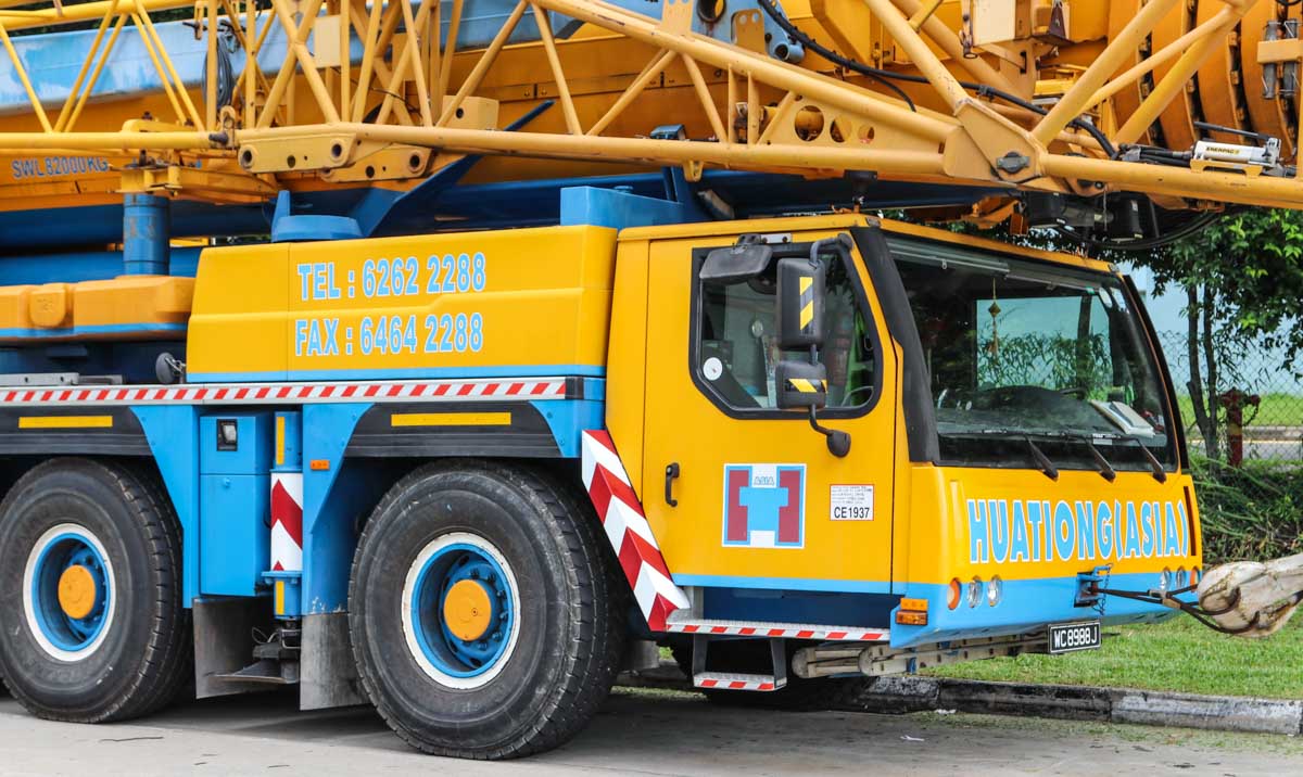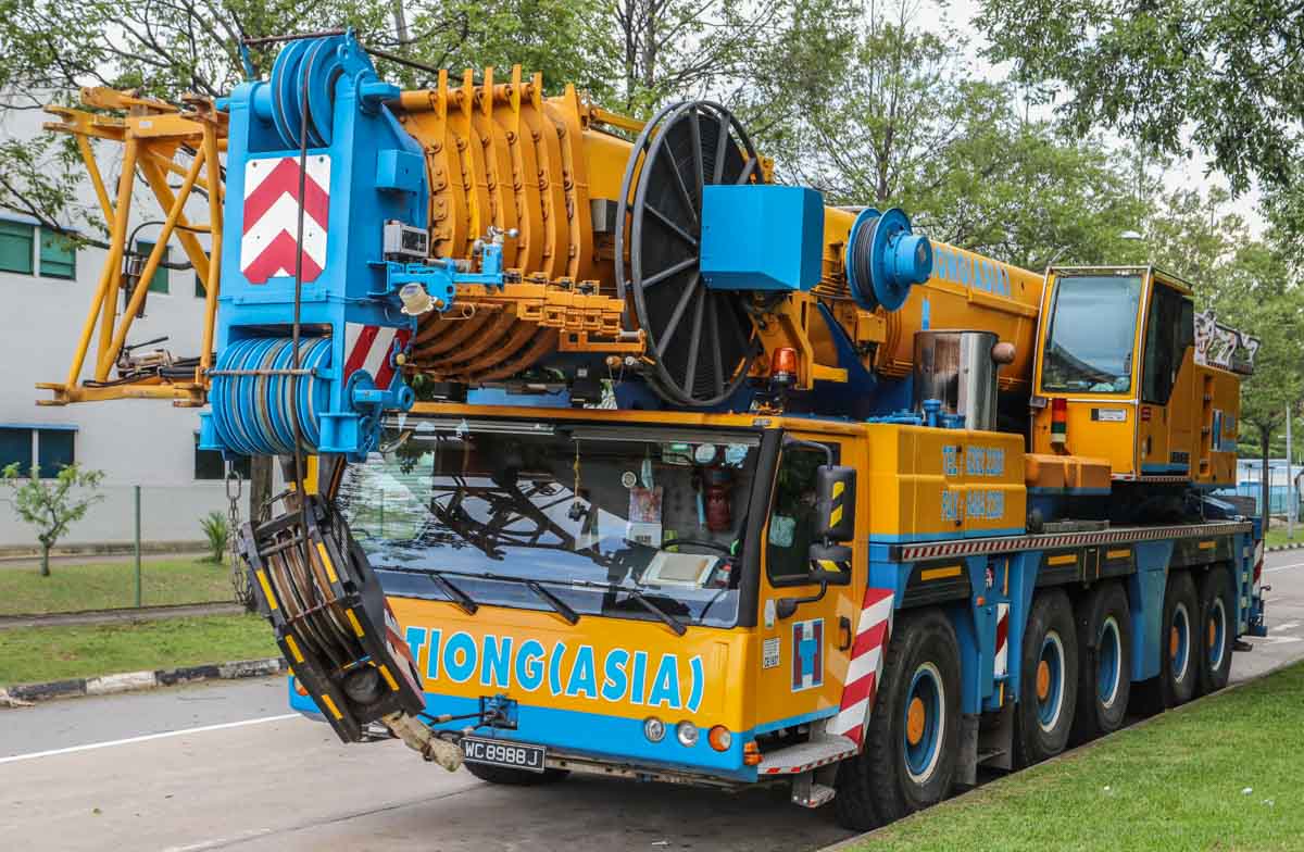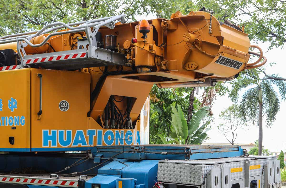 This fine Liebherr LTM 1200-5.1 belongs to Huationg (Asia) from Singapore (SG). It is a 200-tonne telescopic crane mounted on a 5-axle carrier, built in 2009.