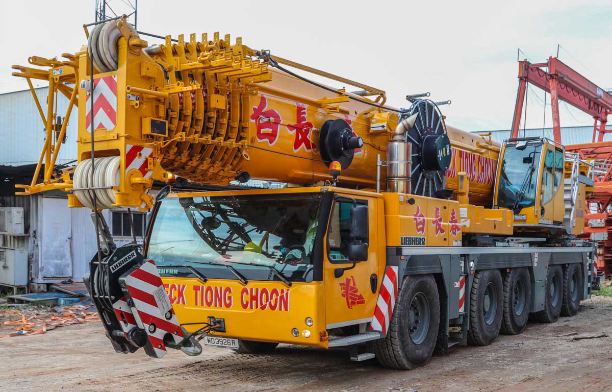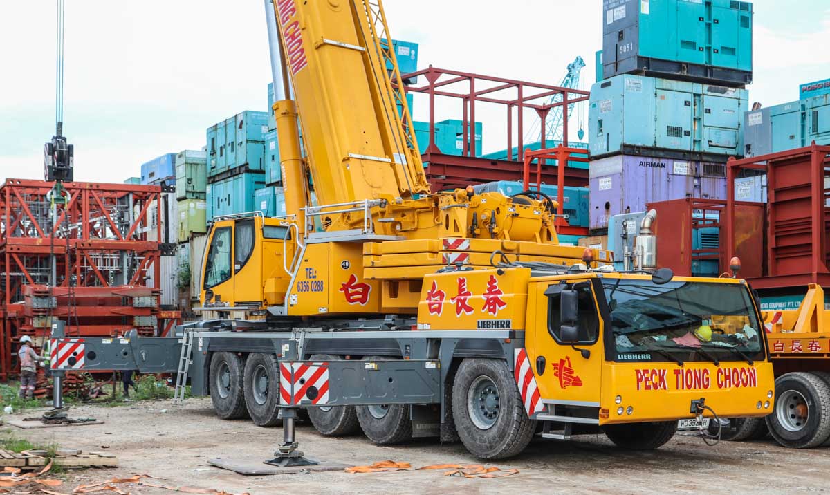 In 2020, Peck Tiong Choon from Singapore (SG) commissioned this impressive Liebherr LTM 1230-5.1. It is a 230-tonne crane mounted on a 5-axle carrier. Here, the crane was deployed at a storage yard to lift components of a tower crane.