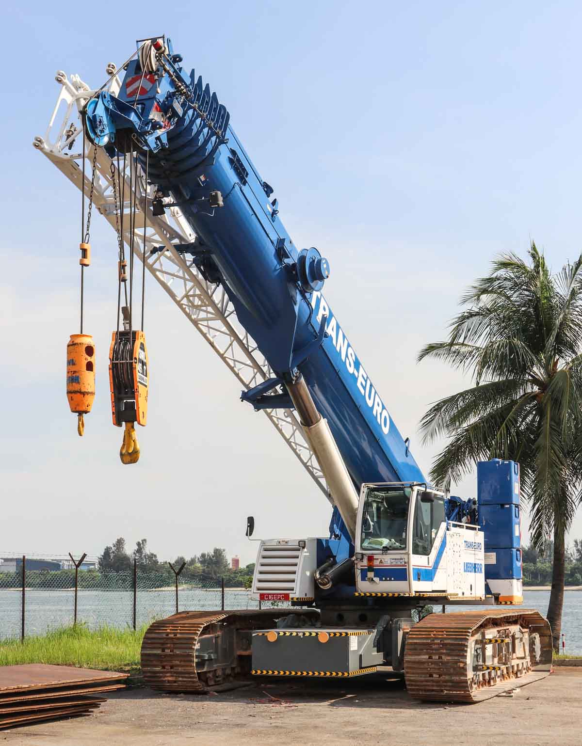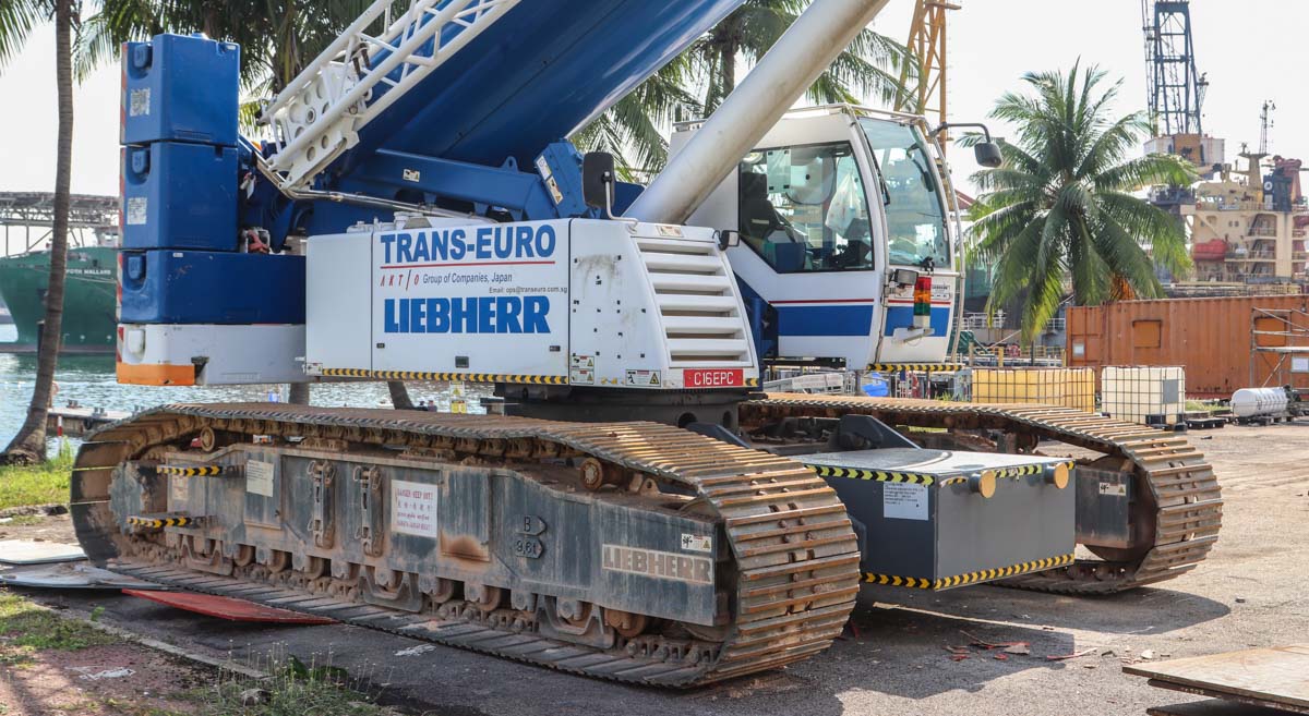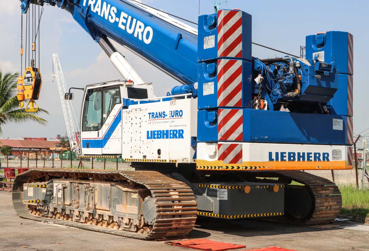 This impressive Liebherr LTR 1100 belonged to Trans-Euro from Singapore (SG). It is a 100-ton telescopic crawler crane from the year 2016. This crane has since been sold and is now operating in Australia.