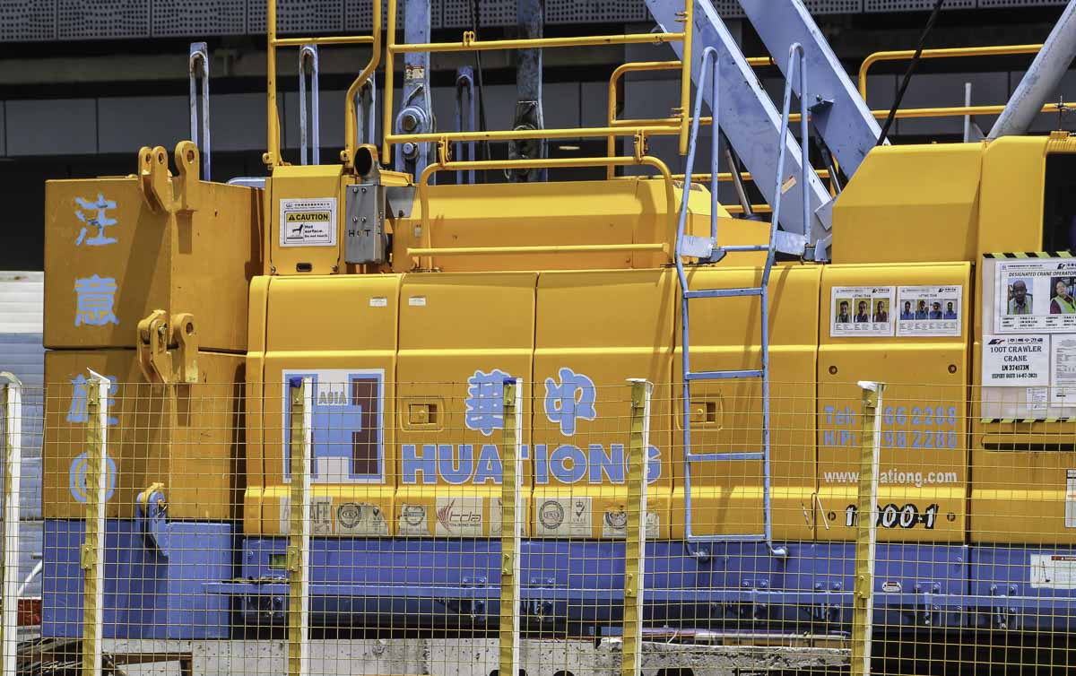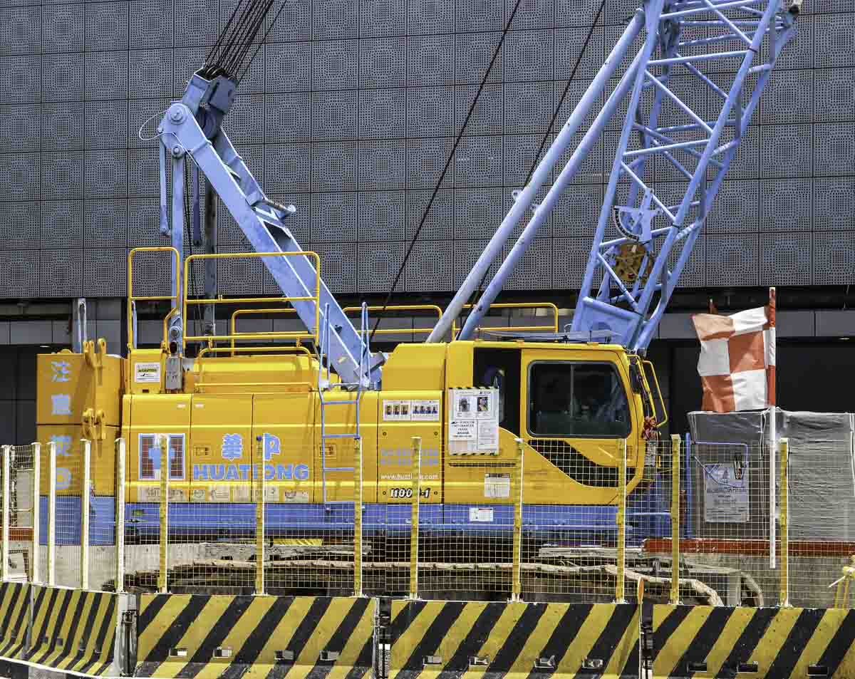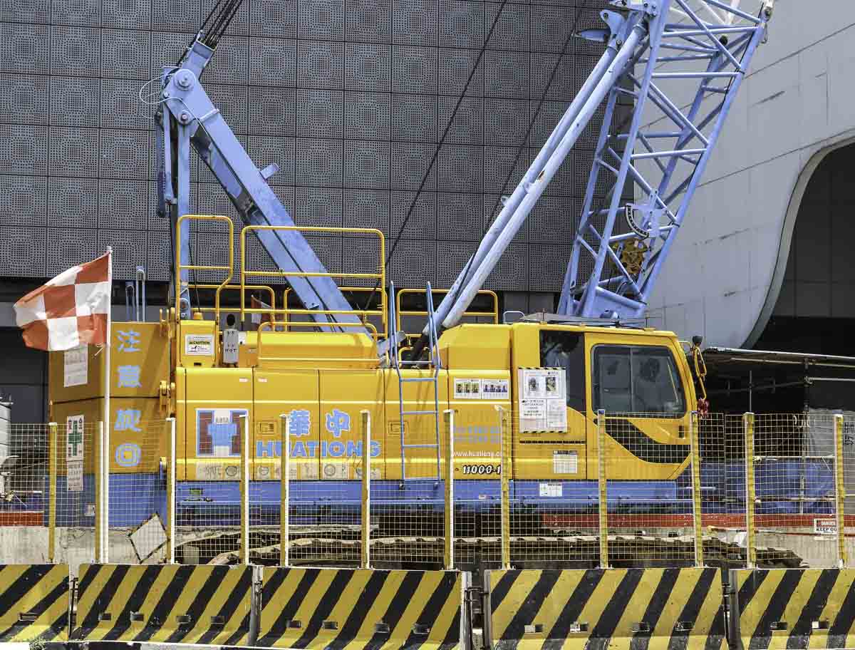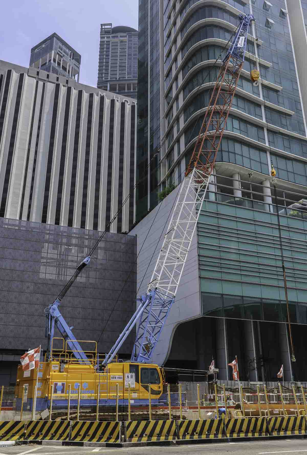 This beautiful Manitowoc 11000-1 from Huationg (Asia) - now Denzai - was used on a small construction site in the center of Singapore (SG). It is a 100-ton crawler crane.