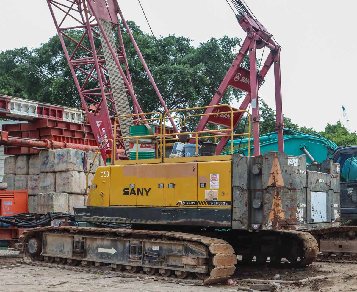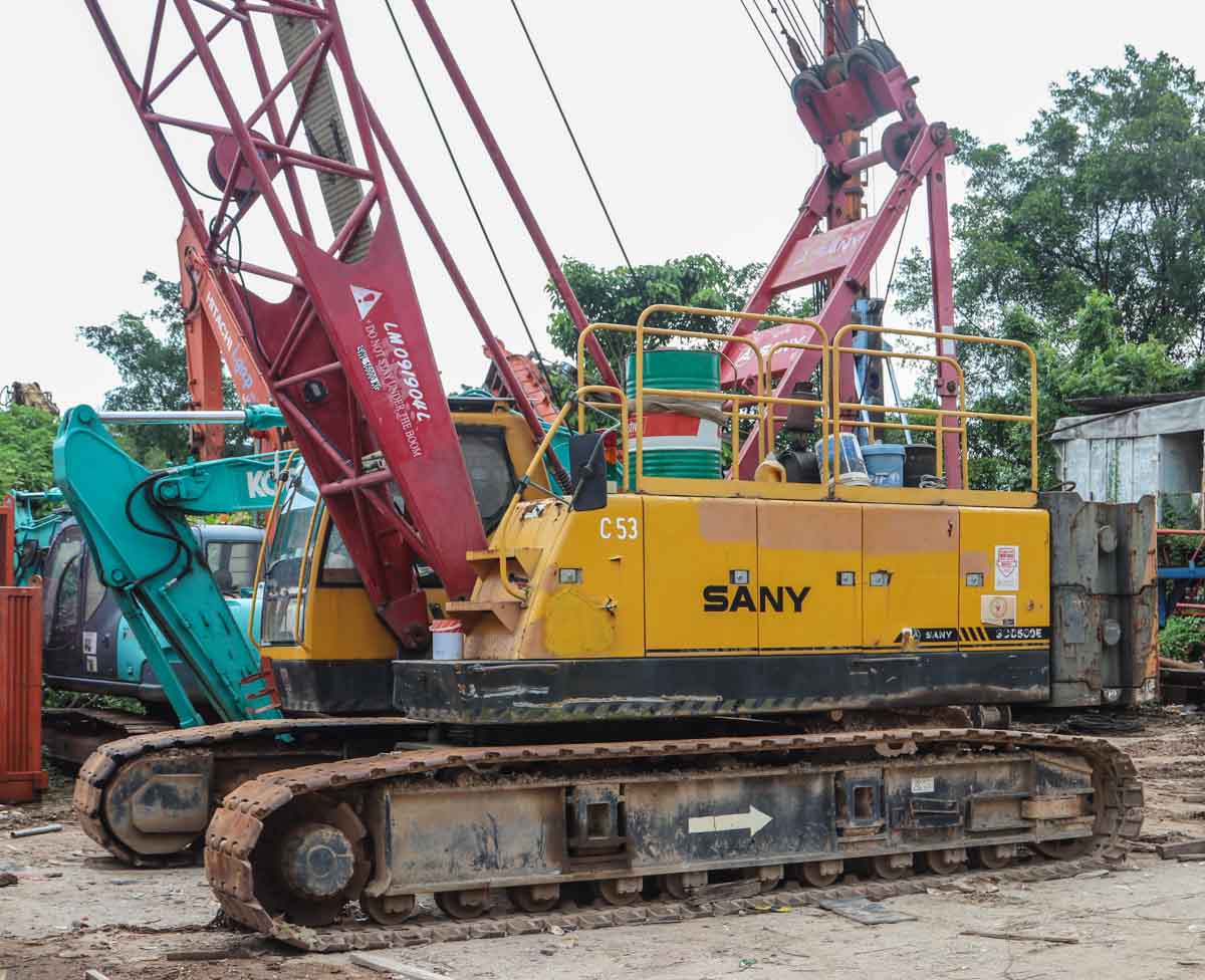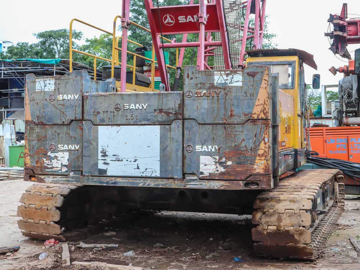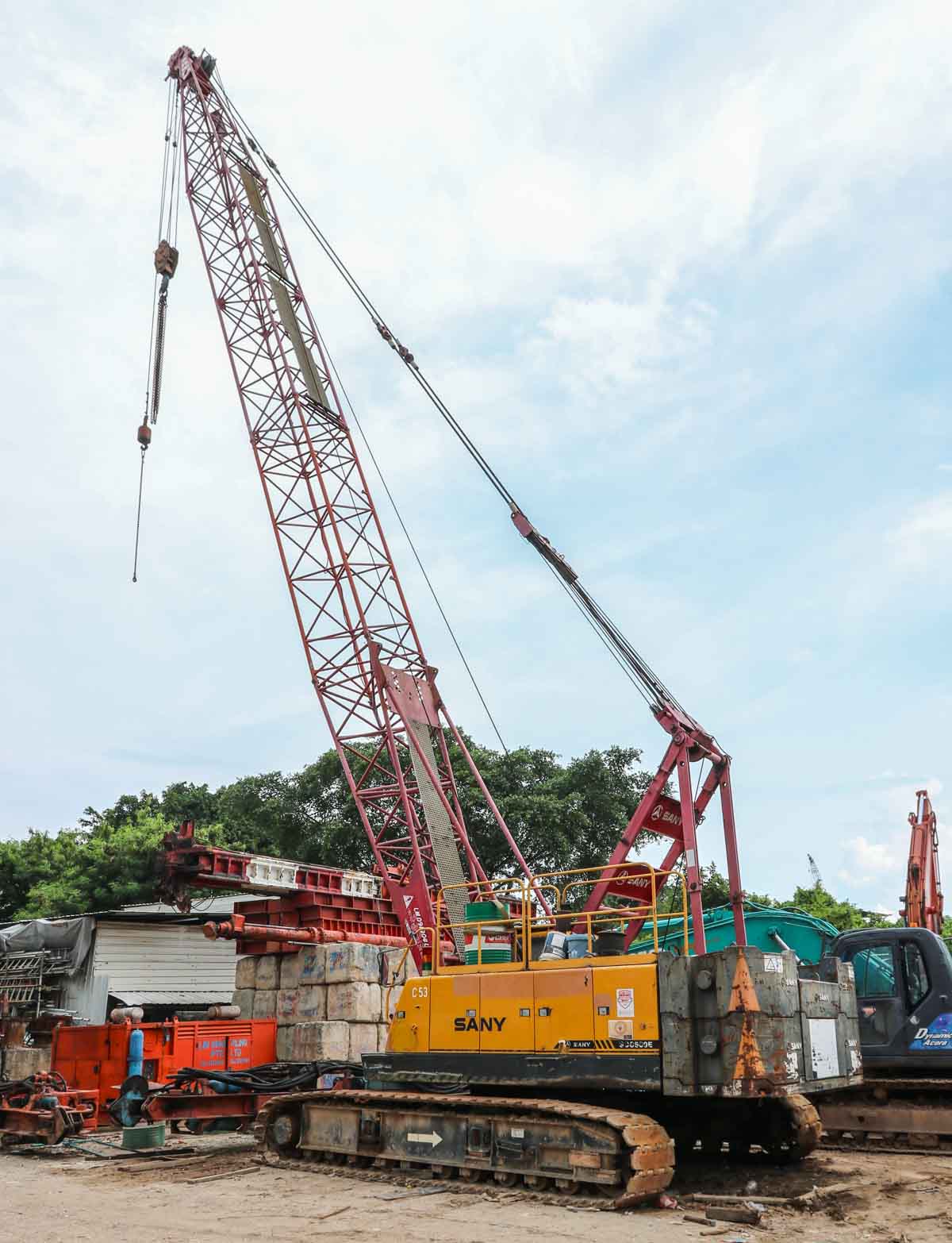 This Sany SCC500E was operated at a small yard in Singapore (SG). It is a 50-ton crawler crane built in 2009.