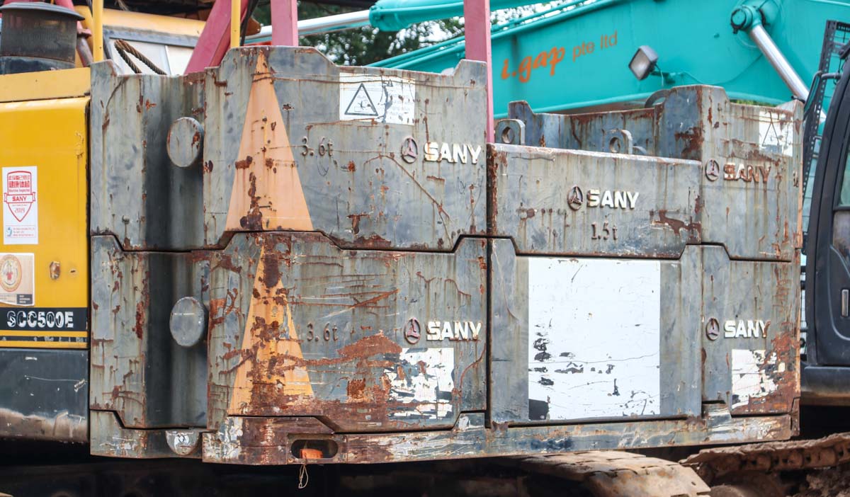 A total of 18.5 tons of counterweight is mounted to the superstructure.