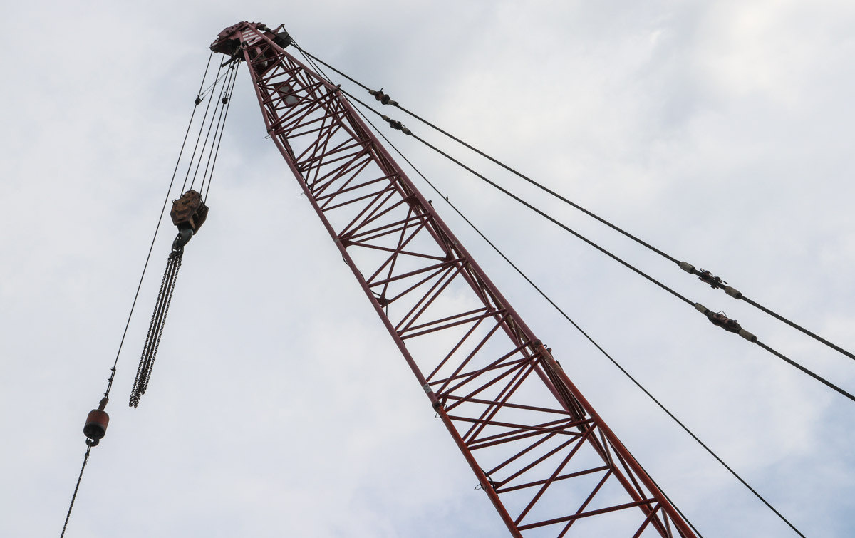The crane is equipped with two 6-ton winches, both of which are in use here. Each winch is fitted with a 20 mm hoist rope.