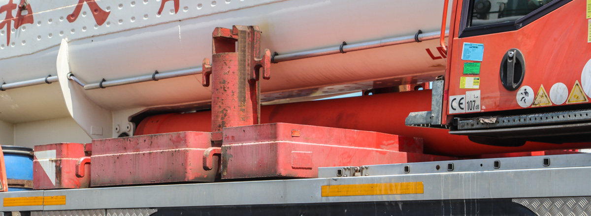 The carrier carries a standard counterweight of 15 tonnes. The full counterweight of the crane weighs 96.6 tonnes and has a slewing radius of 5.6 metres.