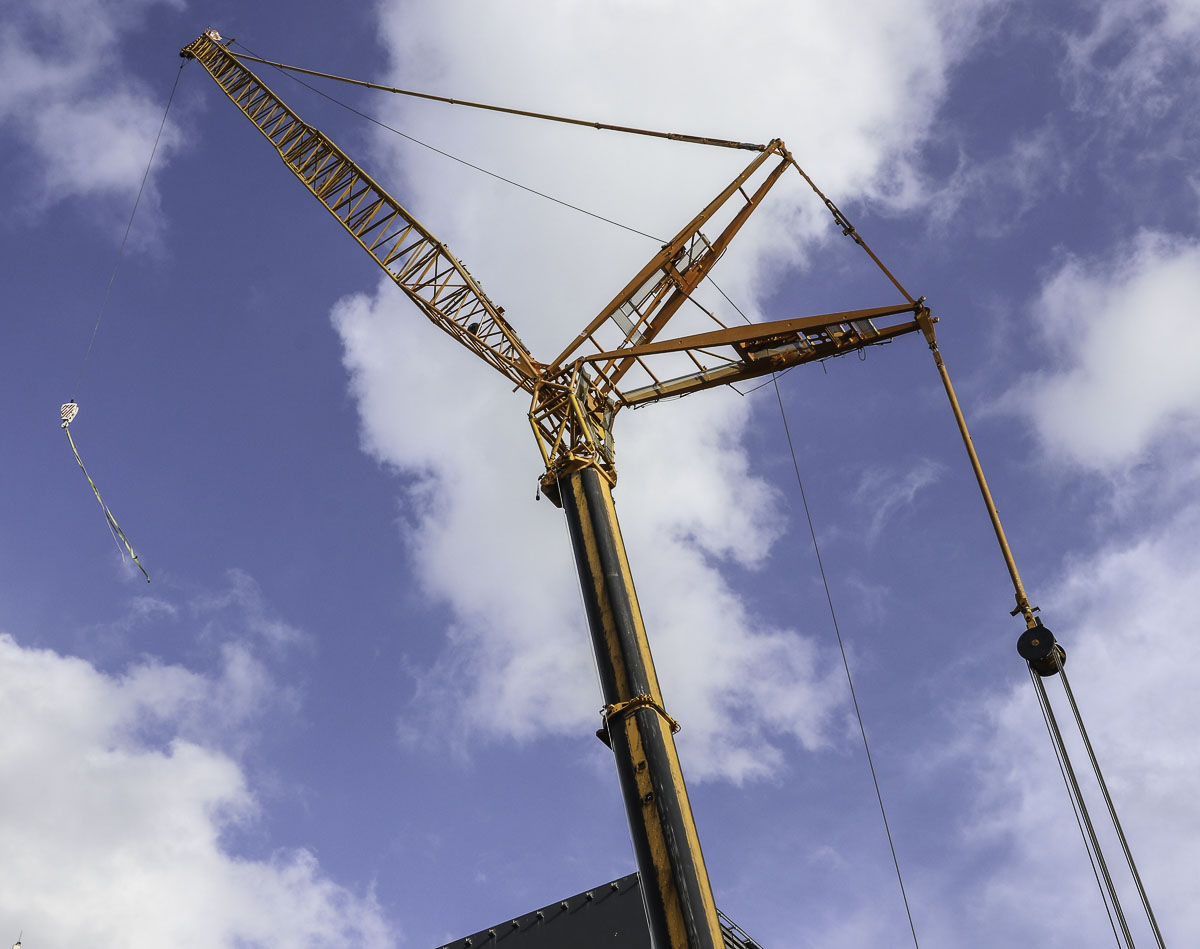 Here, the main boom was extended to a length of 51.8 meters, and the luffing jib has a length of 60 meters.