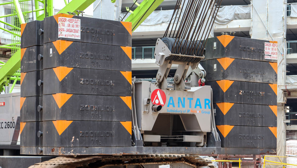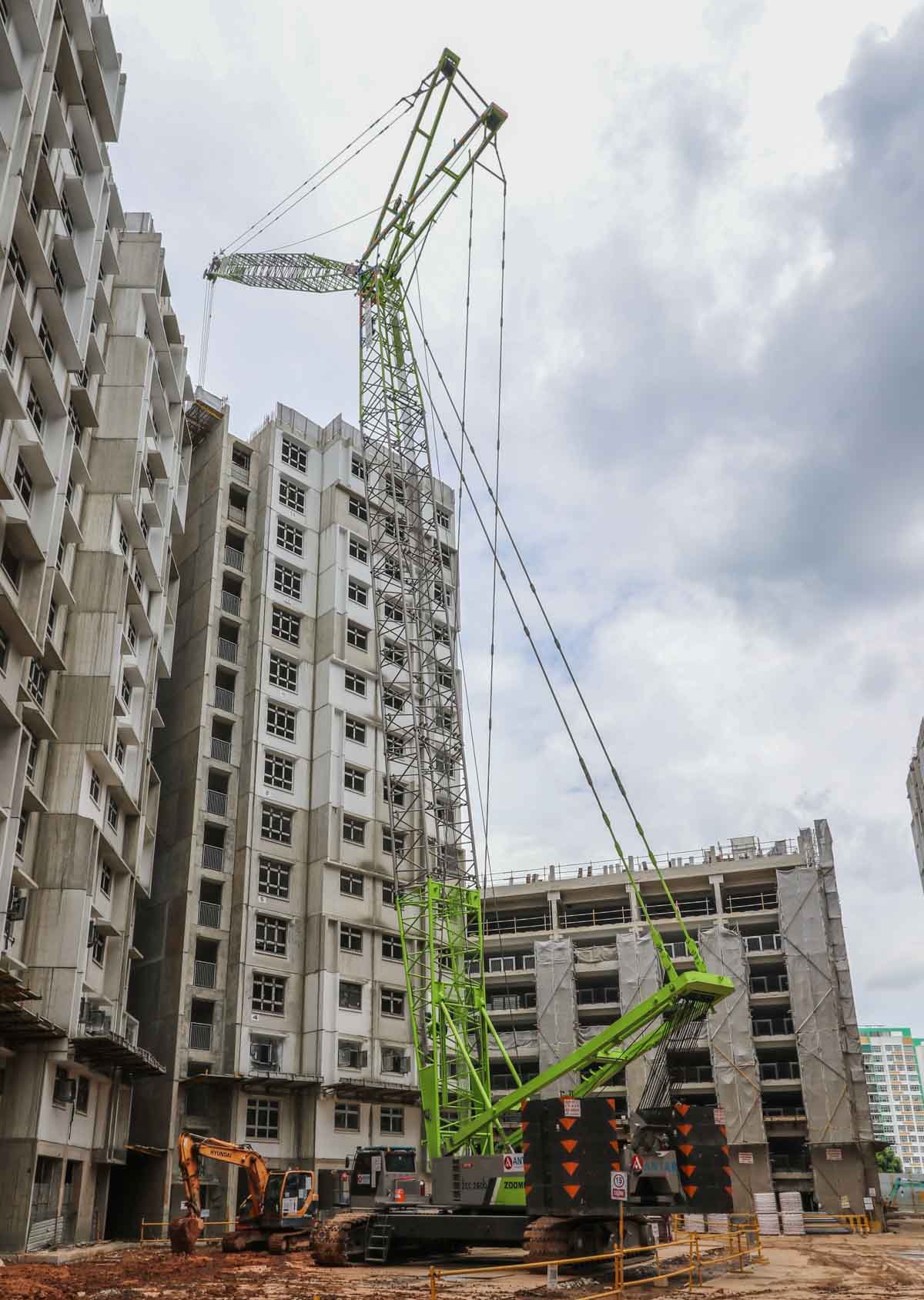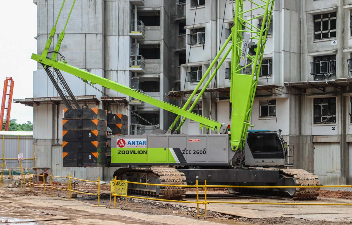 This impressive Zoomlion ZCC2600 is owned by Antar from Singapore (SG) and was deployed there on a major construction project for the erection of apartment buildings. It is a 260-ton crawler crane built in 2019.